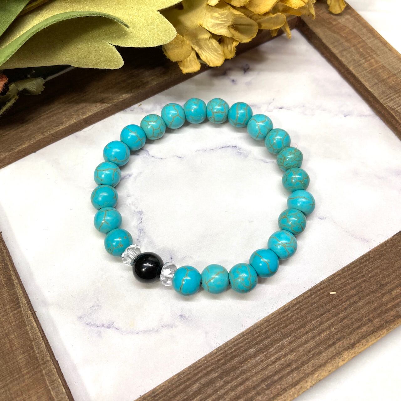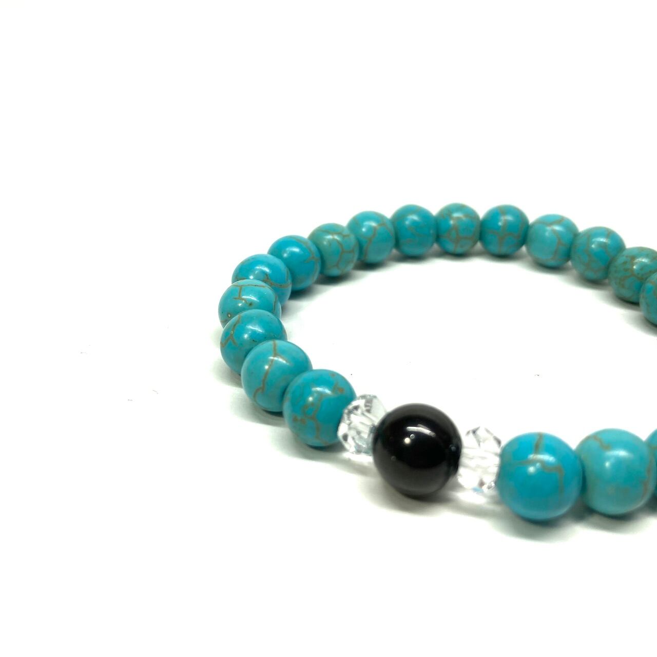 こちらは、ブラックスピネルとターコイズを組み合わせた一粒ブレスレットです。今回はお買い得プライスにて販売しておりますので是非この機会にどうぞ。(お買い得プライスは予告なく終了する場合がありますのでお早めに!!) 石大きさ8mm玉で基本サイズは内周15cm(サイズ変更は1cmあたり100円で承っております。サイズ変更の場合は金額変更しますのでメッセージにてご連絡くださいませ。)です。