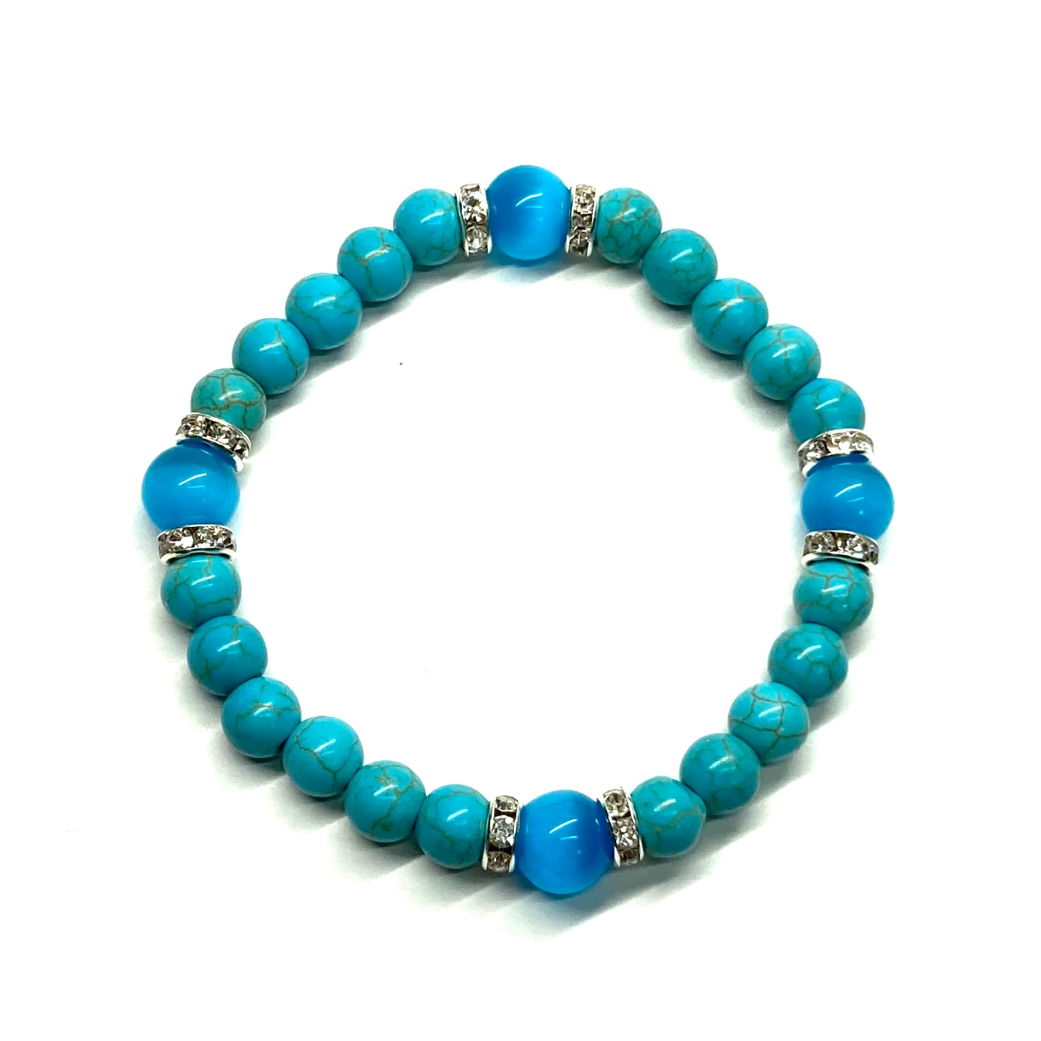 ターコイズ&キャッツアイ(ライトブルー) パワーストーン ブレスレット (シルバー)メンズ レディース ハンドメイト