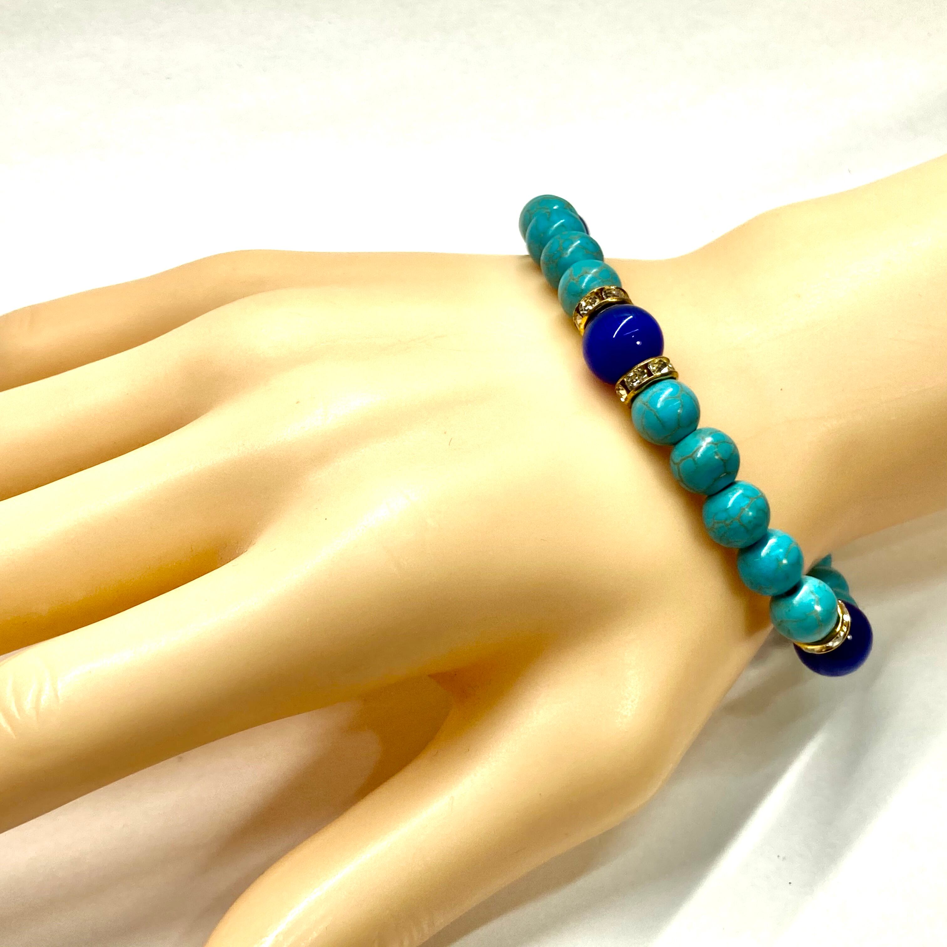 こちらは、8mm玉のキャッツアイとターコイズを使用したパワーストーンブレスレットです。間にはロンデルを挟み高級感ある大人っぽいデザインに仕上がっています。内周約17cmです。気になる方は是非この機会にどうぞ。 【ブレスレット内周サイズ】 内周約17cm 【使用している石、サイズ】 ターコイズ(8mm)・キャッツアイ(10mm) 石は全て浄化済みのものを使っています。