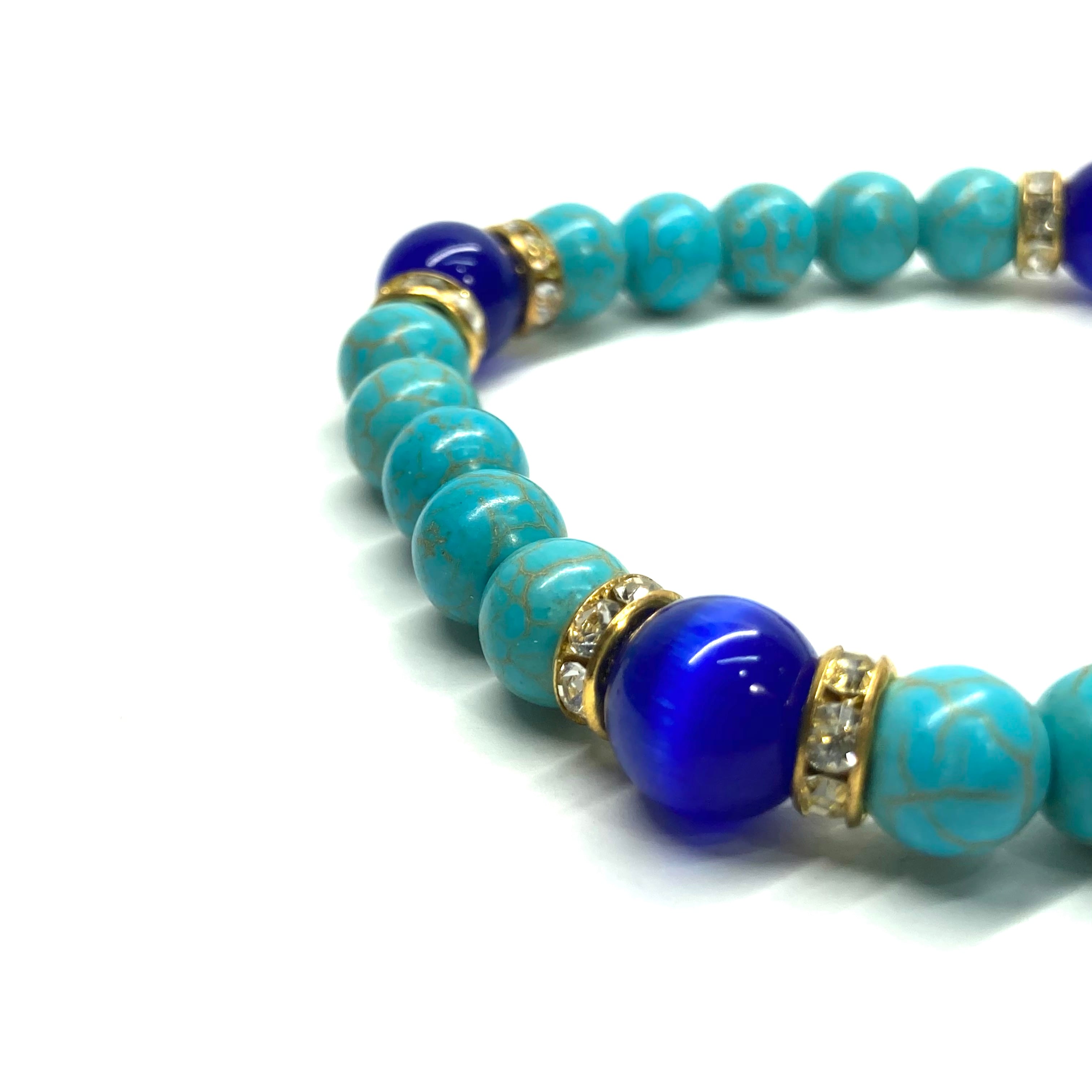 ターコイズ&キャッツアイ(ブルー) パワーストーン ブレスレット (ゴールド)メンズ レディース ハンドメイト #2
