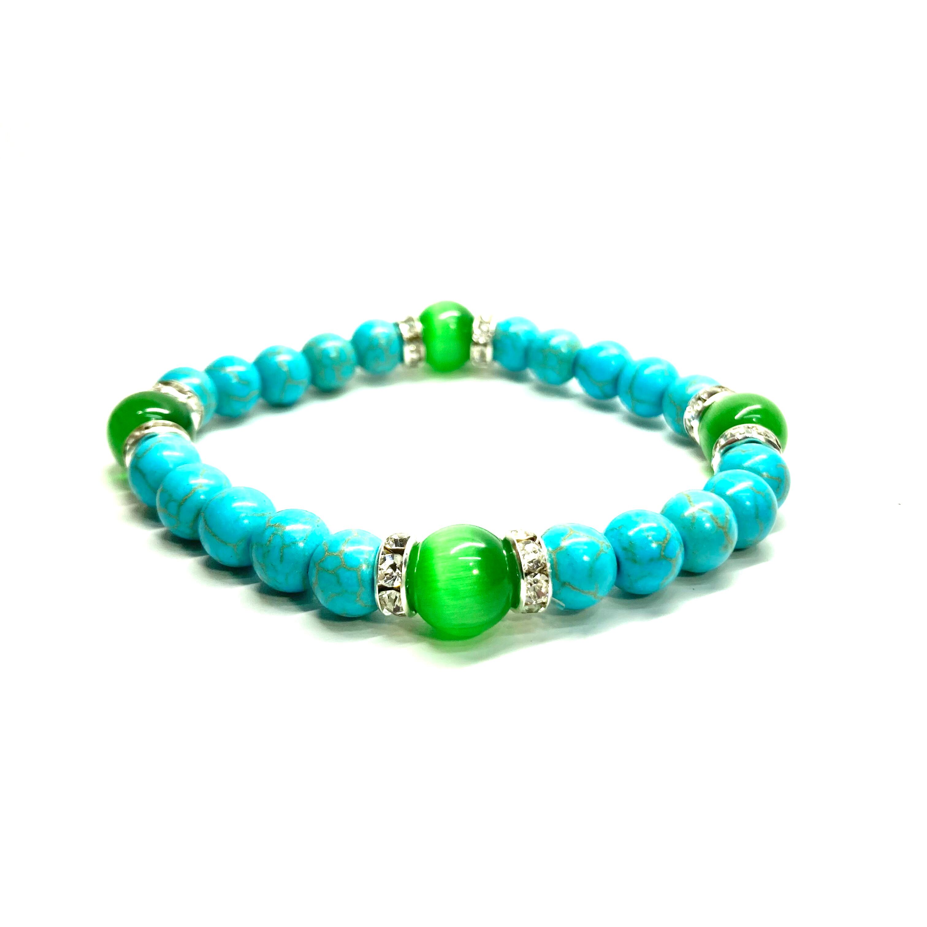 ターコイズ&キャッツアイ(グリーン) パワーストーン ブレスレット (シルバー)メンズ レディース ハンドメイト