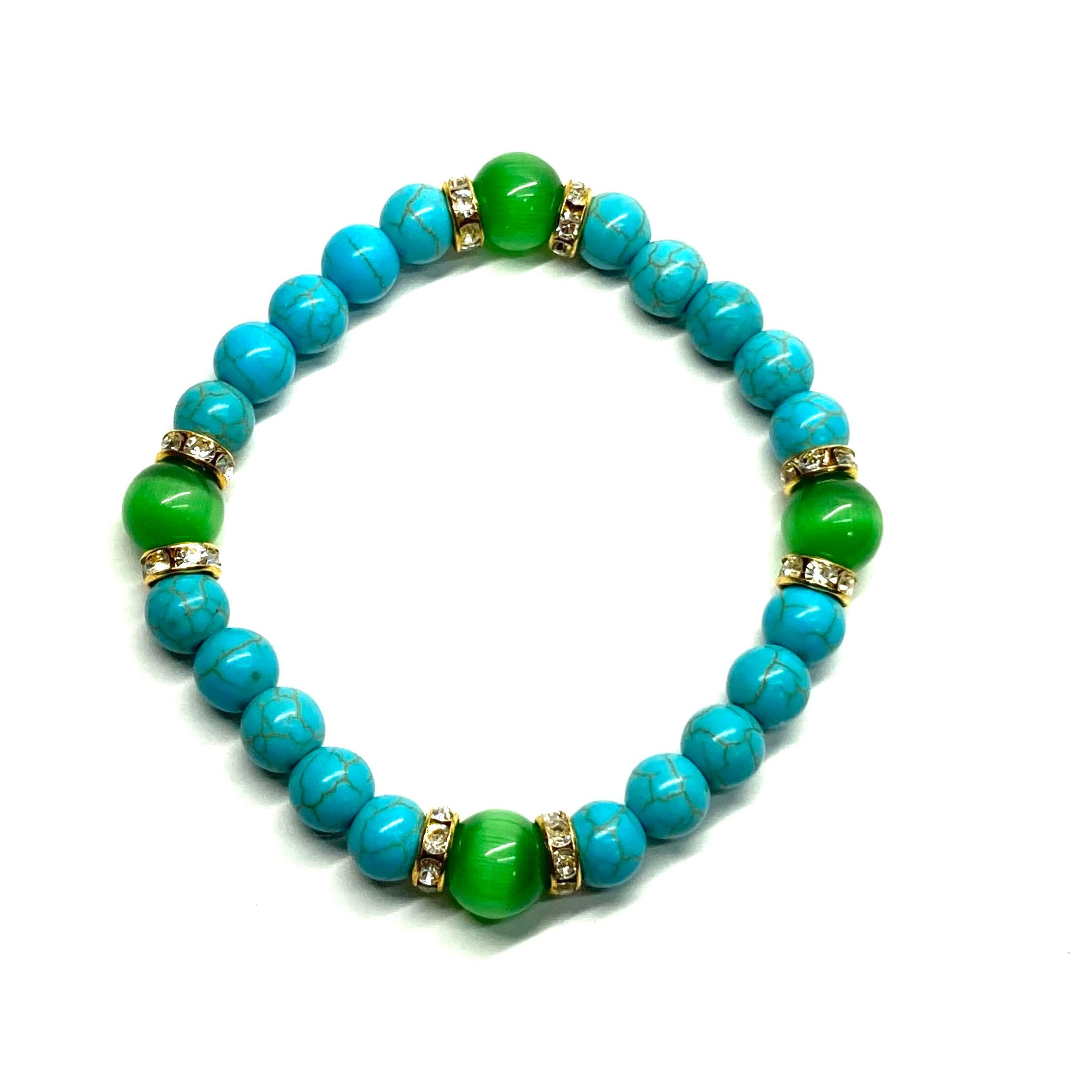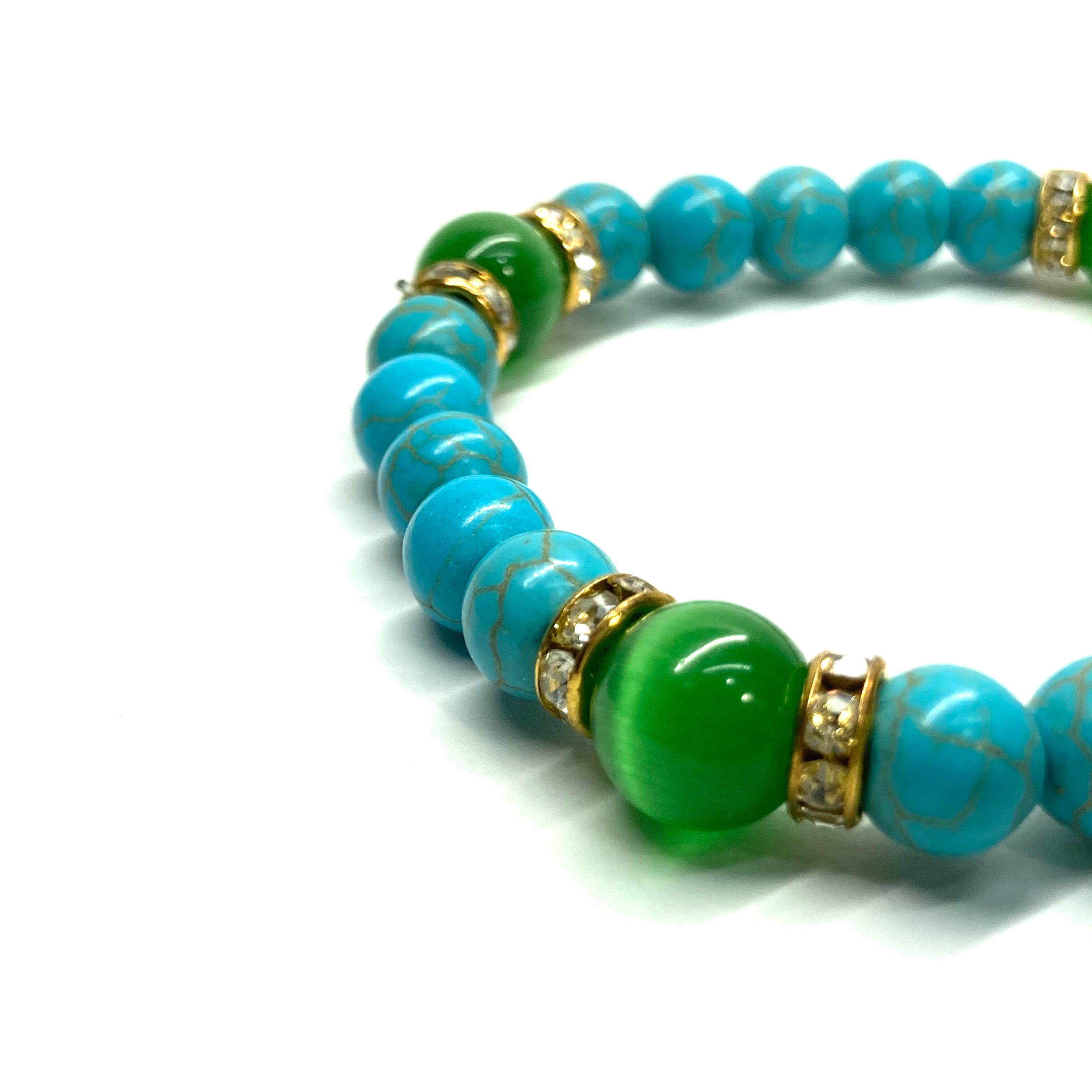 ターコイズ&キャッツアイ(グリーン) パワーストーン ブレスレット (ゴールド)メンズ レディース ハンドメイト