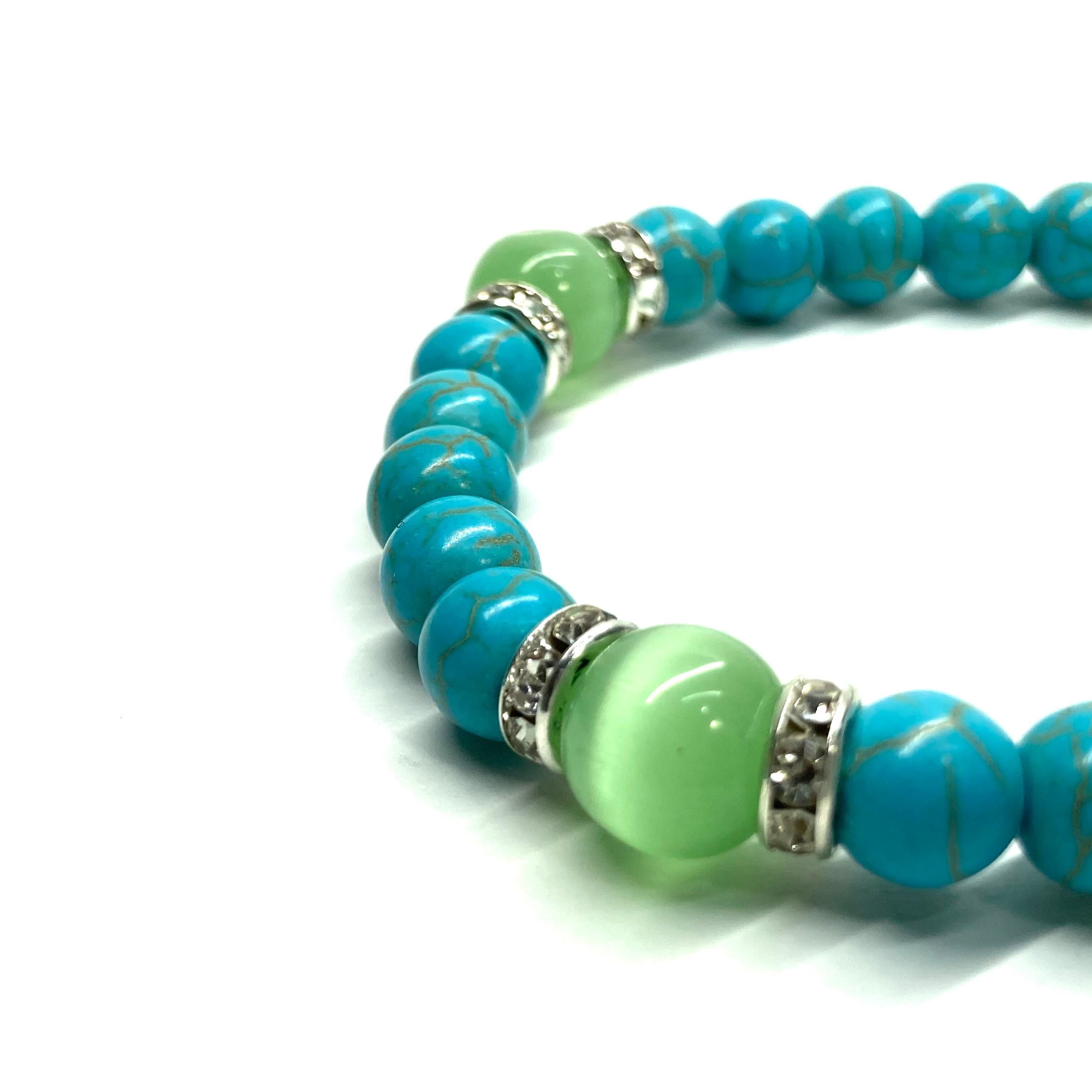 ターコイズ&キャッツアイ(ライトグリーン) パワーストーン ブレスレット (シルバー)メンズ レディース ハンドメイト
