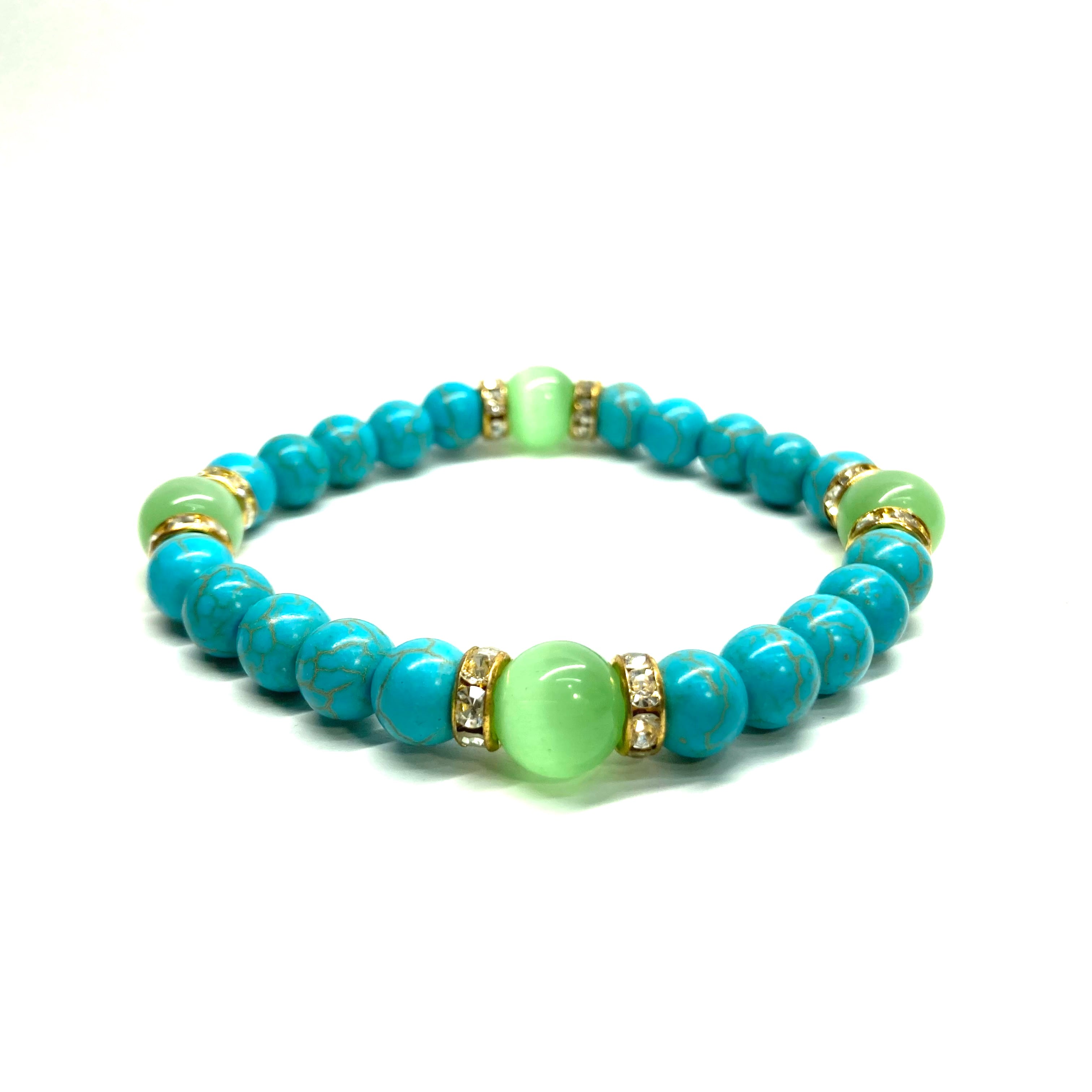ターコイズ&キャッツアイ(ライトグリーン) パワーストーン ブレスレット (ゴールド)メンズ レディース ハンドメイト