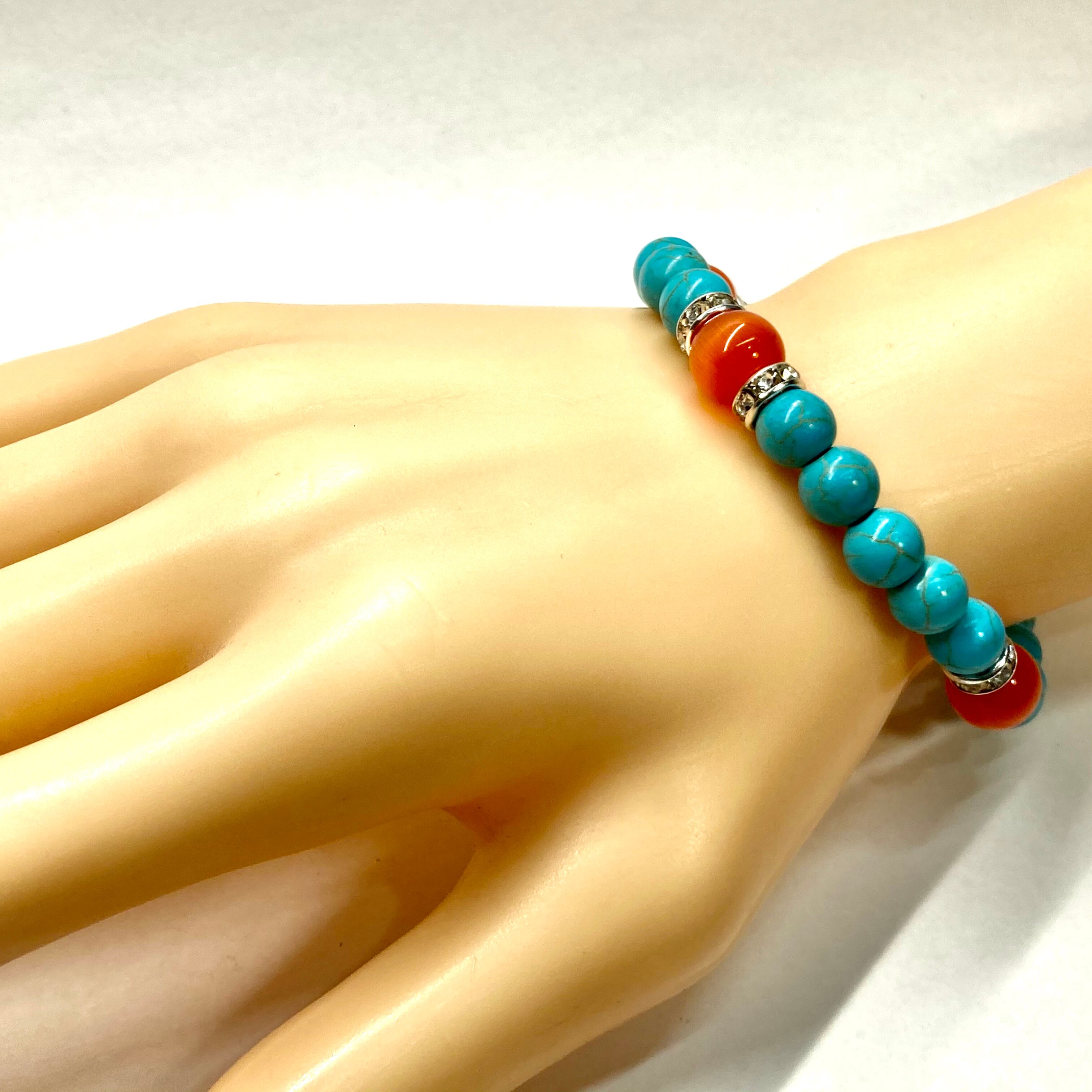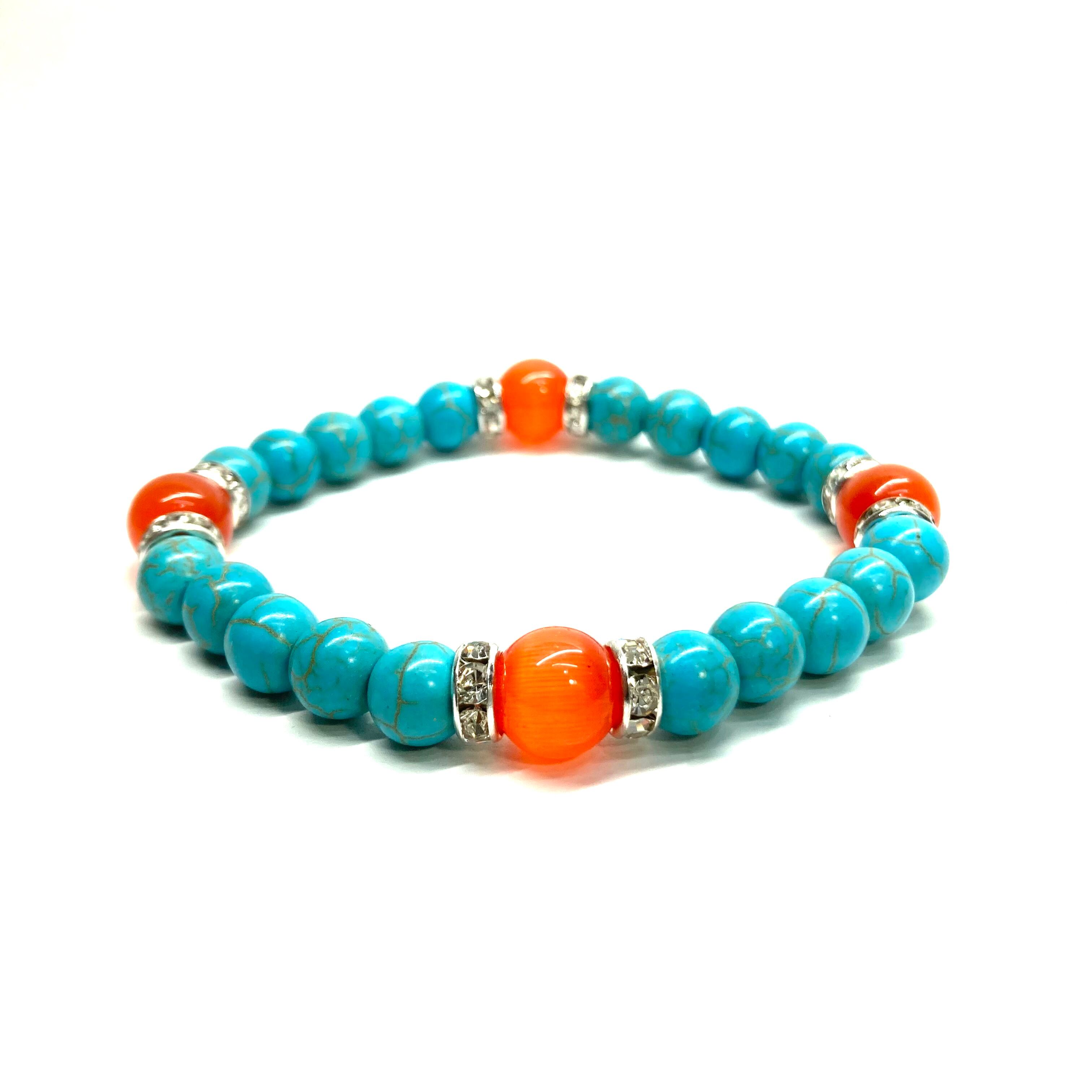 こちらは、8mm玉のキャッツアイとターコイズを使用したパワーストーンブレスレットです。間にはロンデルを挟み高級感ある大人っぽいデザインに仕上がっています。内周約17cmです。気になる方は是非この機会にどうぞ。 【ブレスレット内周サイズ】 内周約17cm 【使用している石、サイズ】 ターコイズ(8mm)・キャッツアイ(10mm) 石は全て浄化済みのものを使っています。