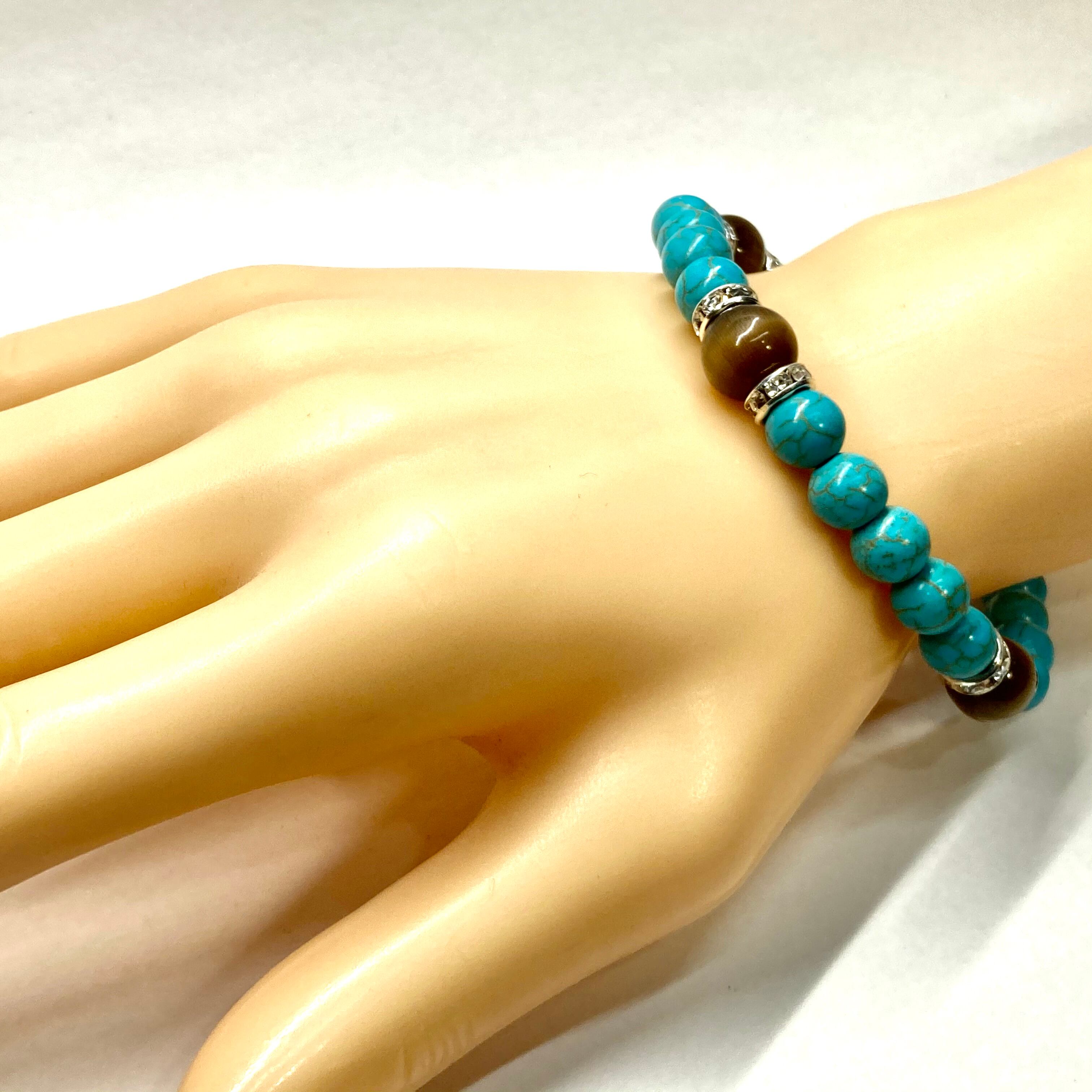 ターコイズ&キャッツアイ(ブラウン) パワーストーン ブレスレット (シルバー)メンズ レディース ハンドメイト