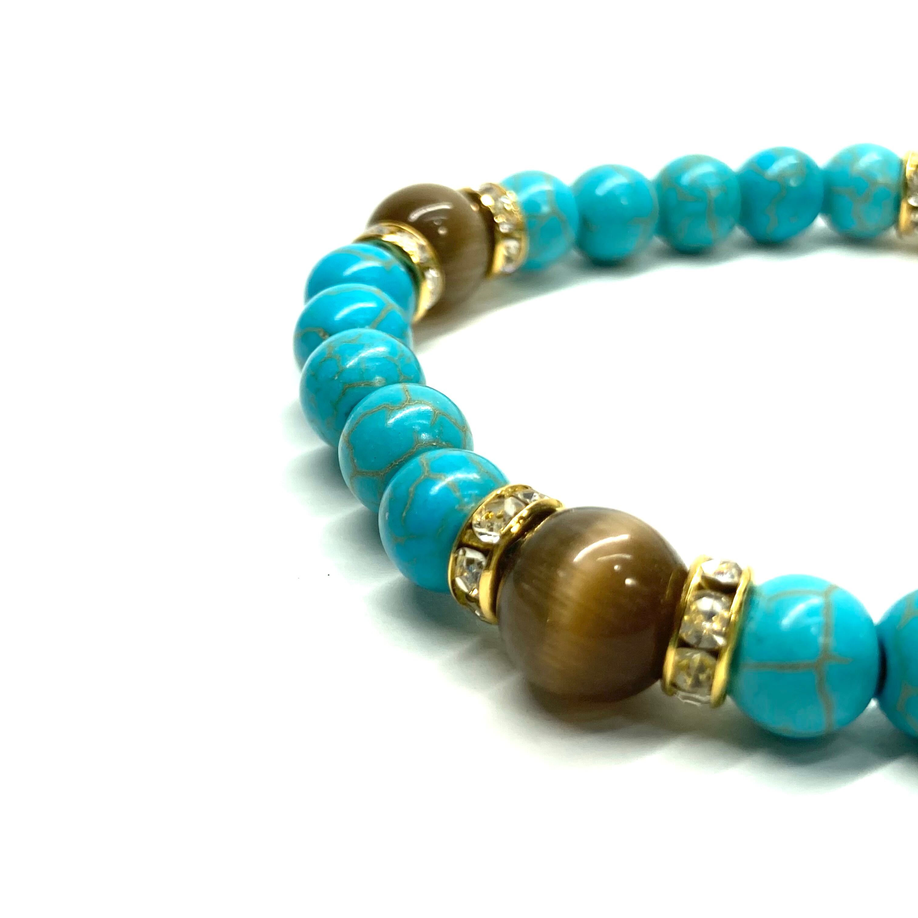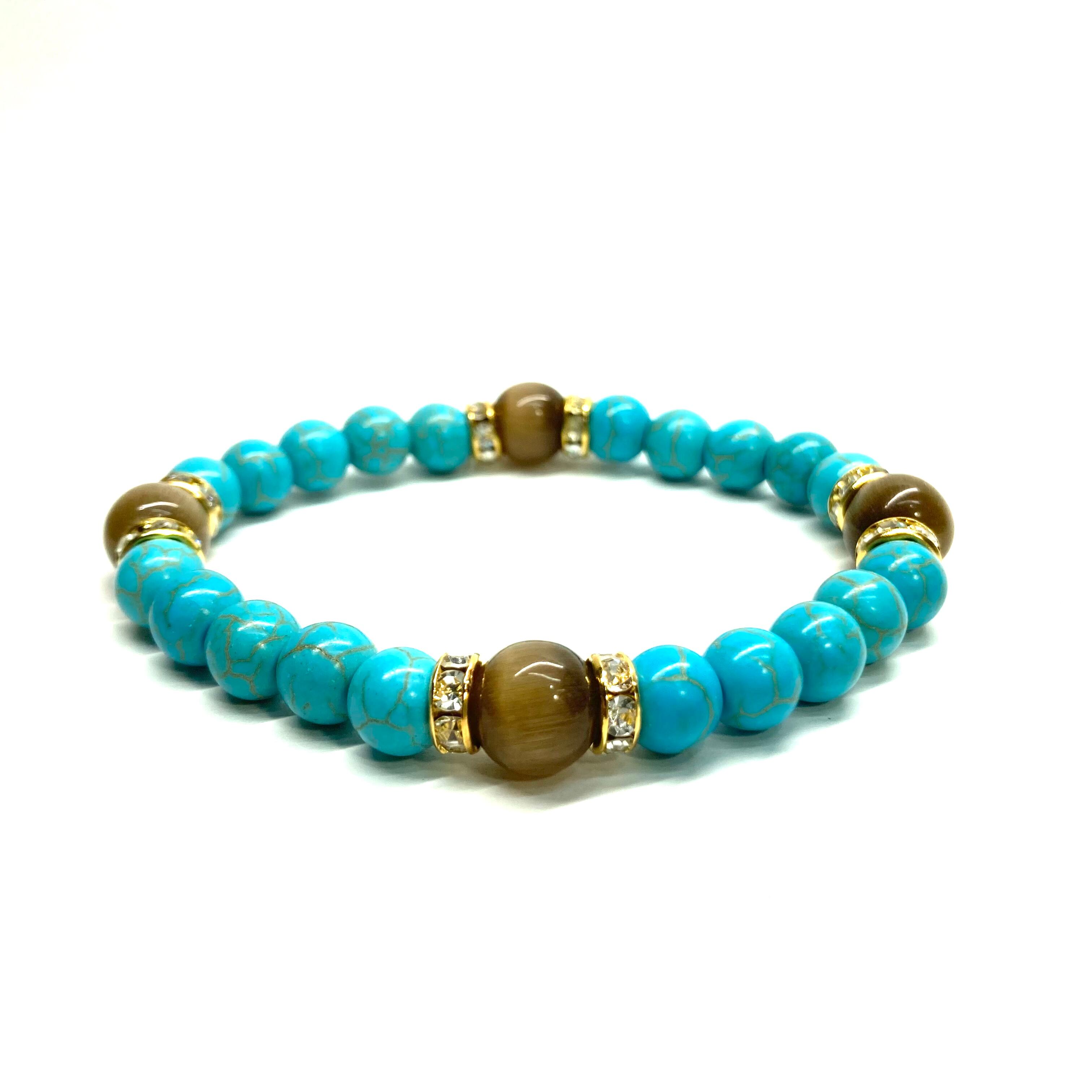 ターコイズ&キャッツアイ(ブラウン) パワーストーン ブレスレット (ゴールド)メンズ レディース ハンドメイト