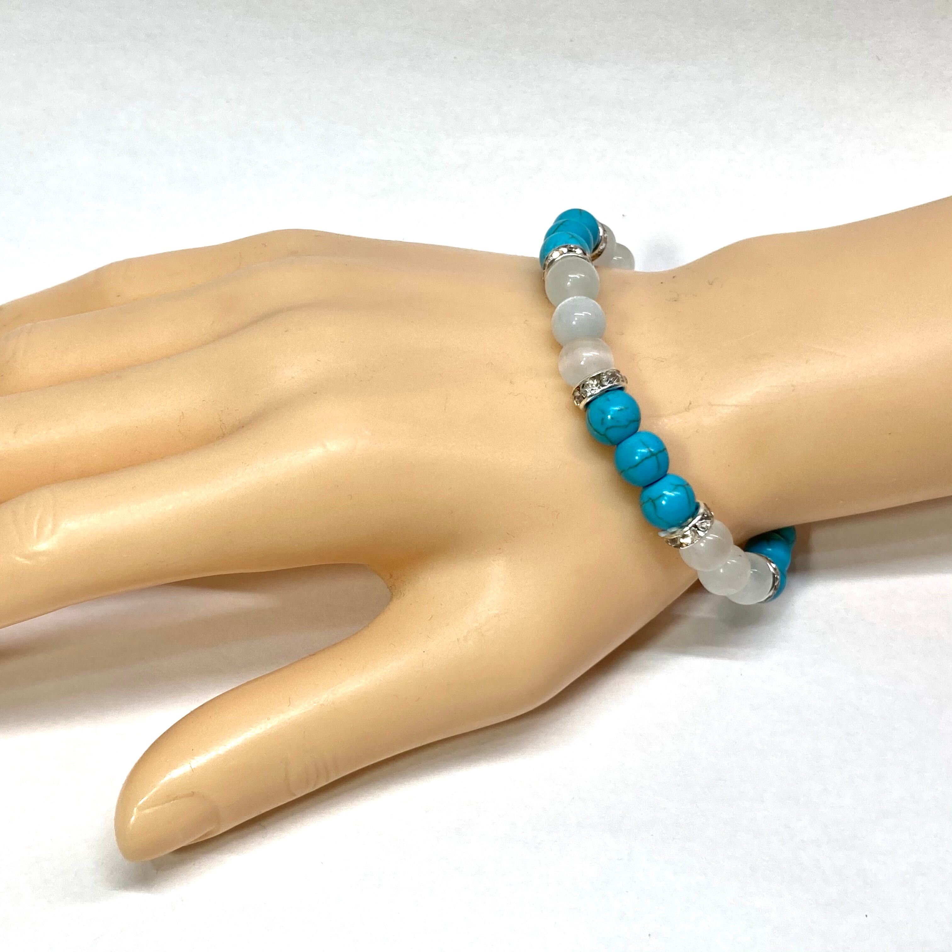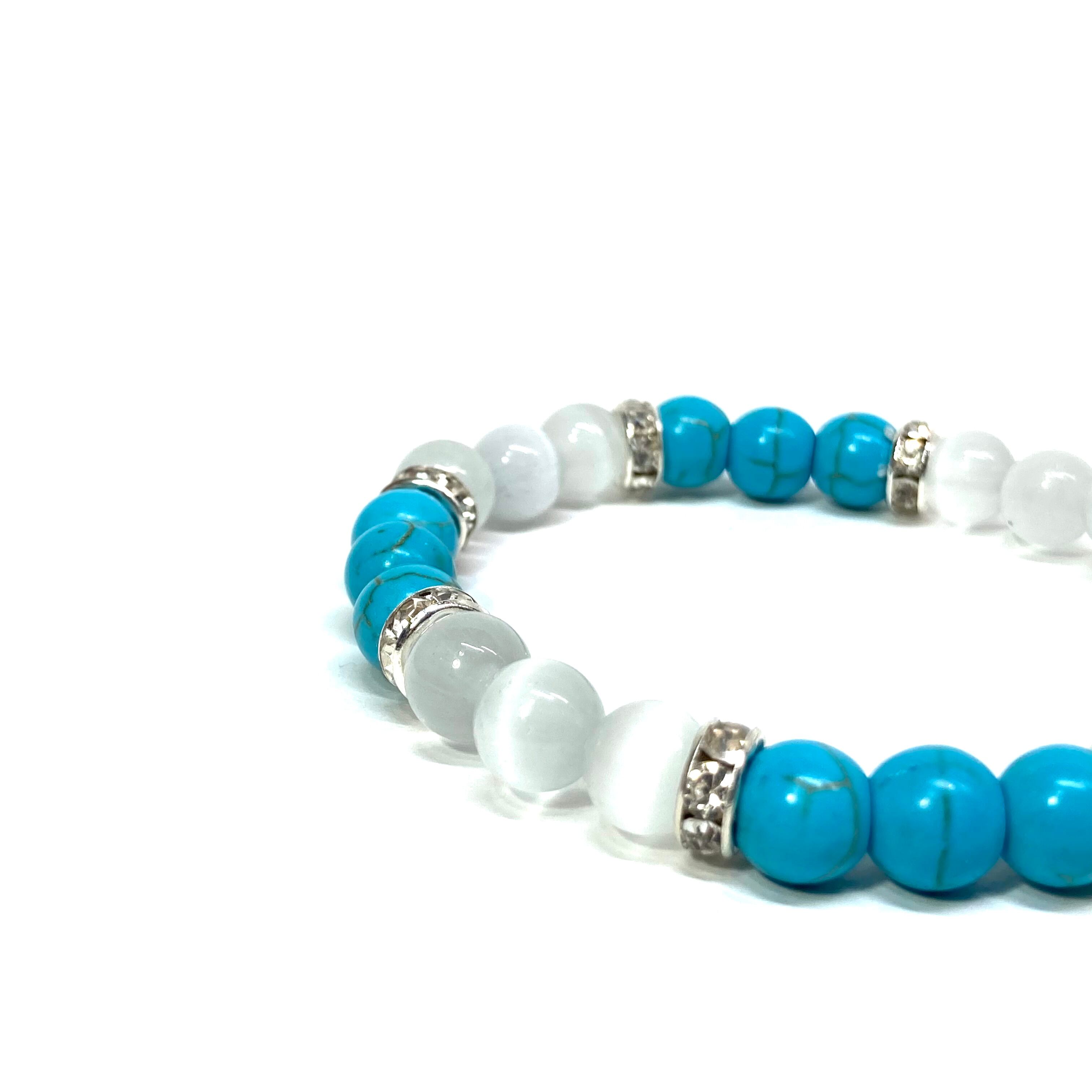 ターコイズ&キャッツアイ(ホワイト) パワーストーン ブレスレット (シルバー)メンズ レディース ハンドメイト