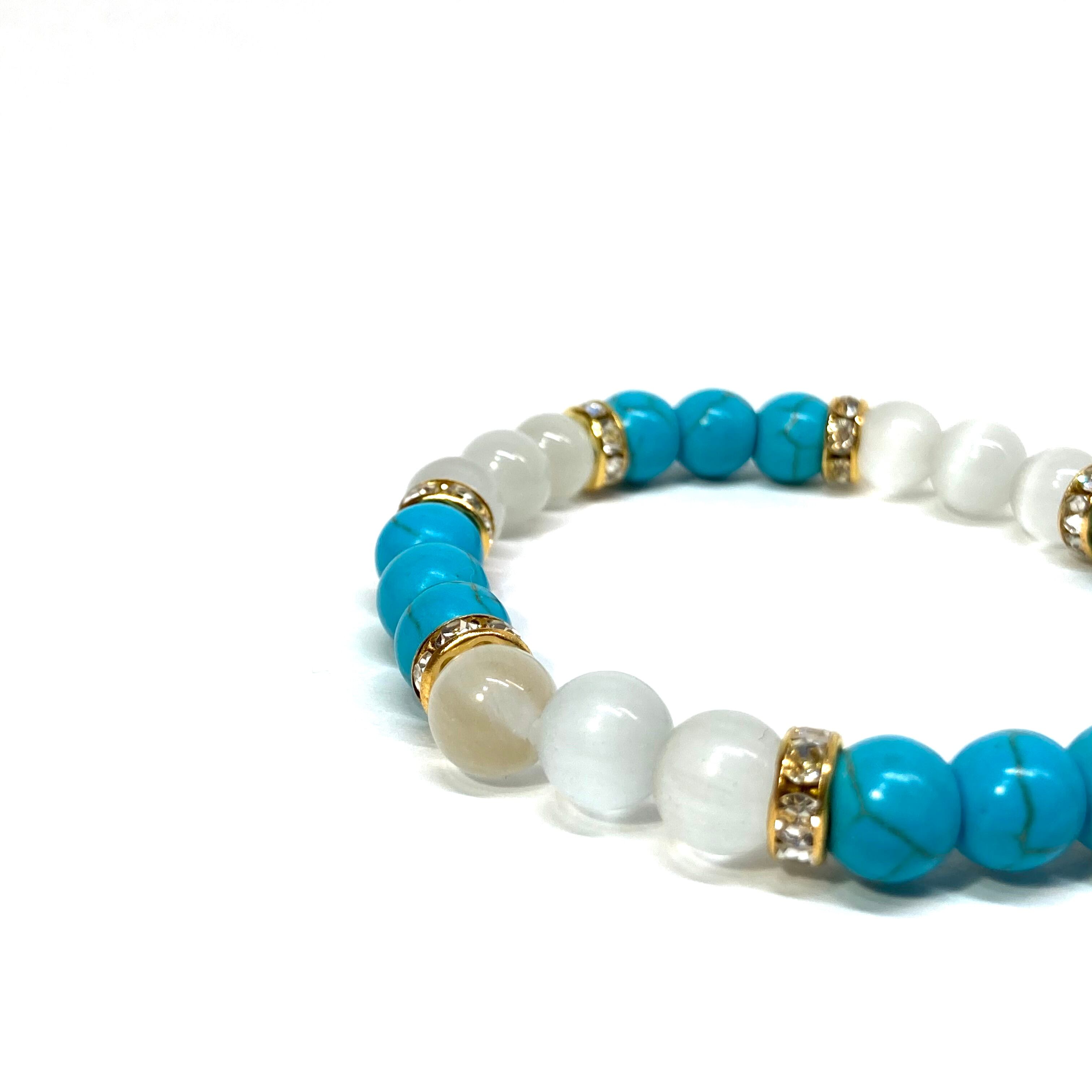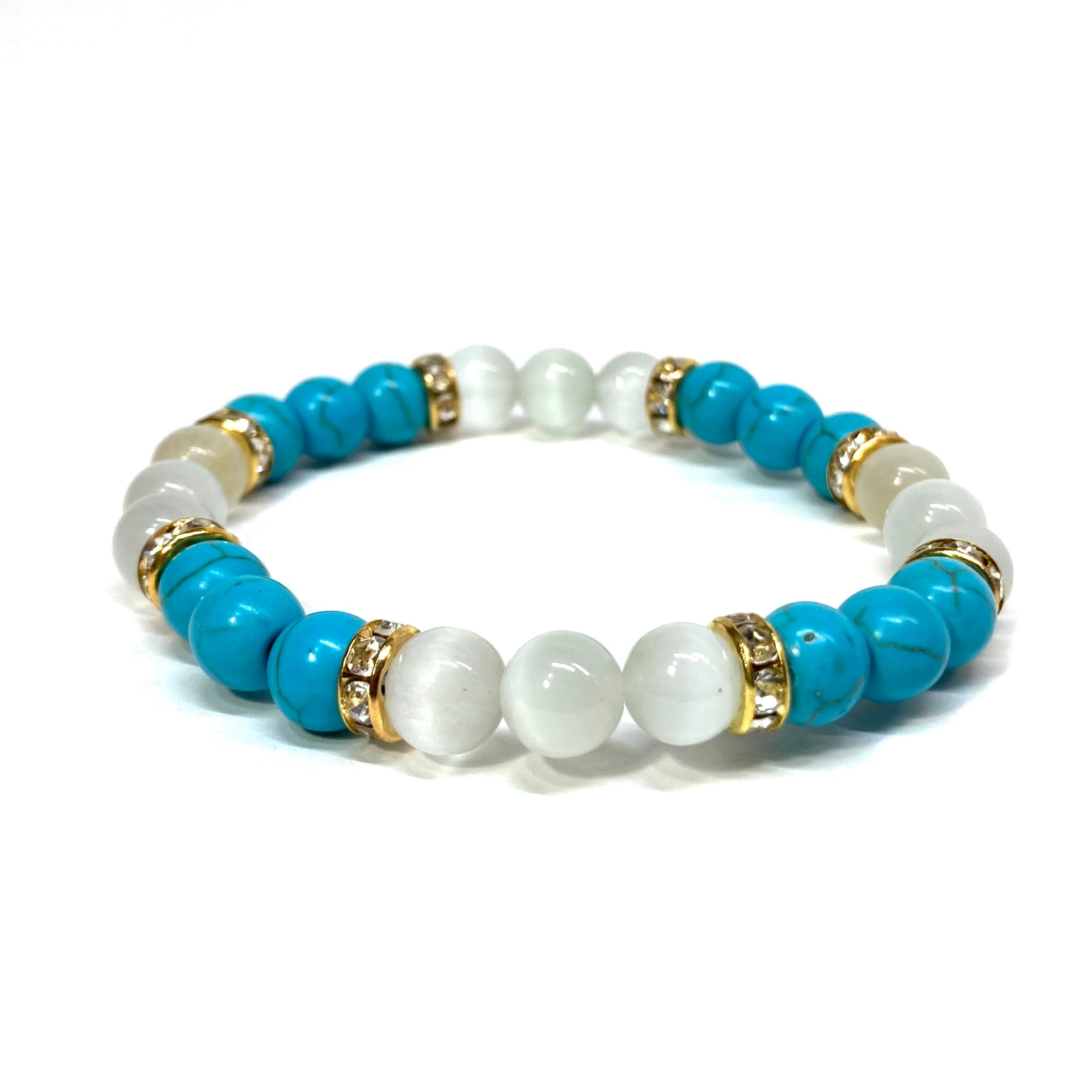 ターコイズ&キャッツアイ(ホワイト) パワーストーン ブレスレット (ゴールド)メンズ レディース ハンドメイト