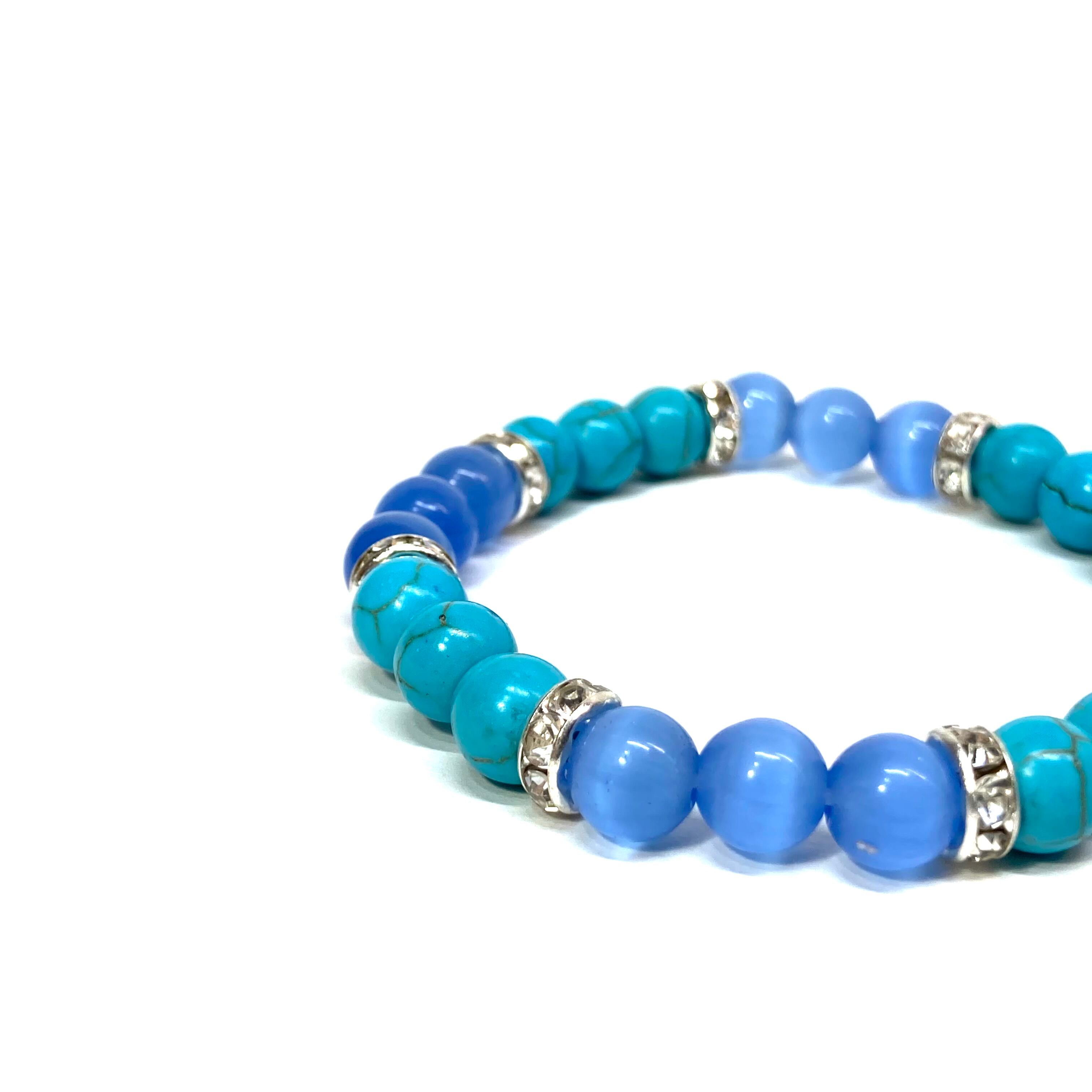 ターコイズ&キャッツアイ(ブルー) パワーストーン ブレスレット (シルバー)メンズ レディース ハンドメイト