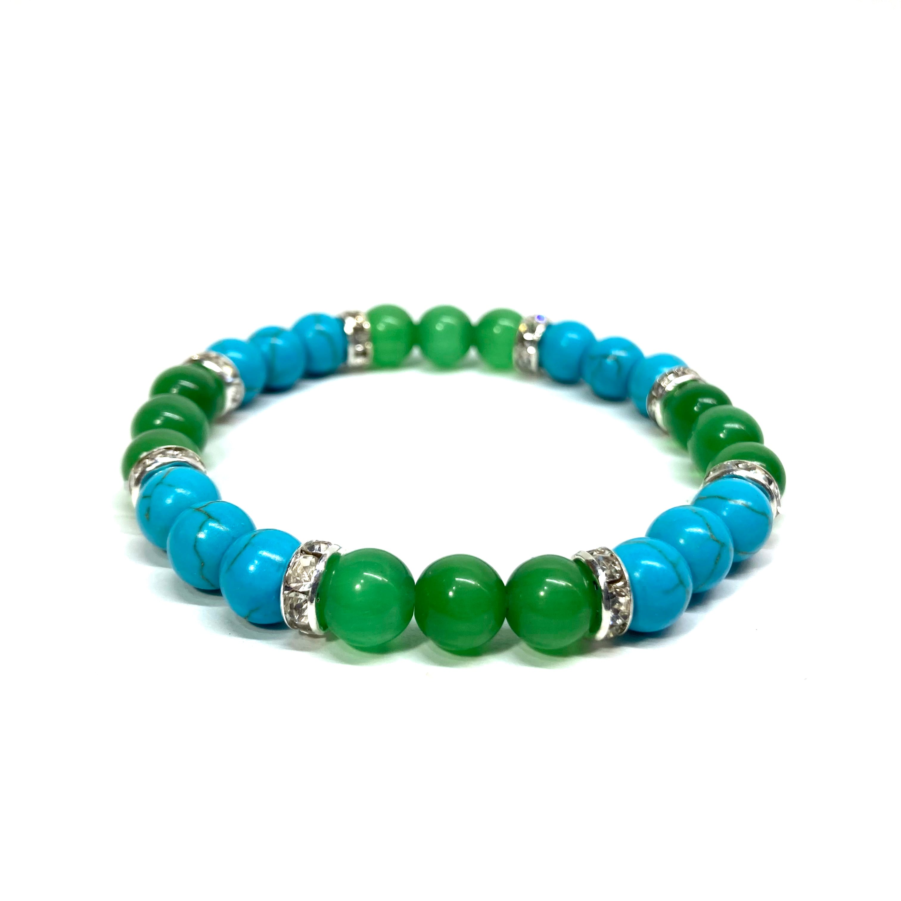 ターコイズ&キャッツアイ(グリーン) パワーストーン ブレスレット (シルバー)メンズ レディース ハンドメイト