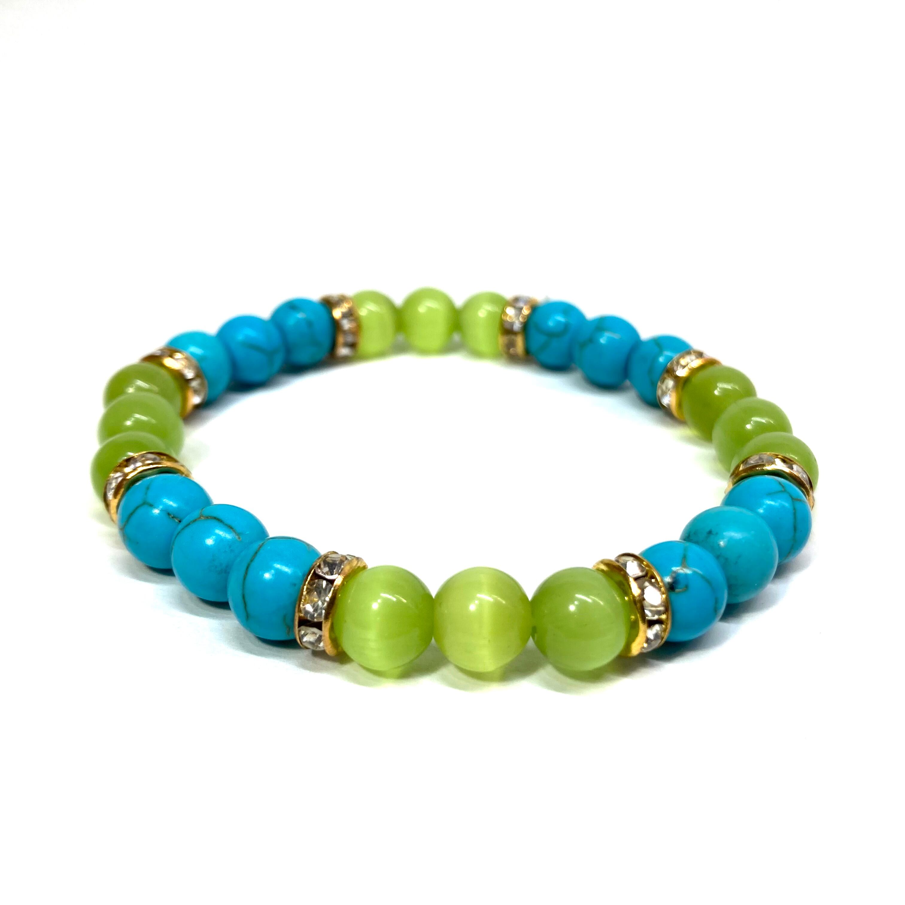 ターコイズ&キャッツアイ(ライムグリーン) パワーストーン ブレスレット (ゴールド)メンズ レディース ハンドメイト