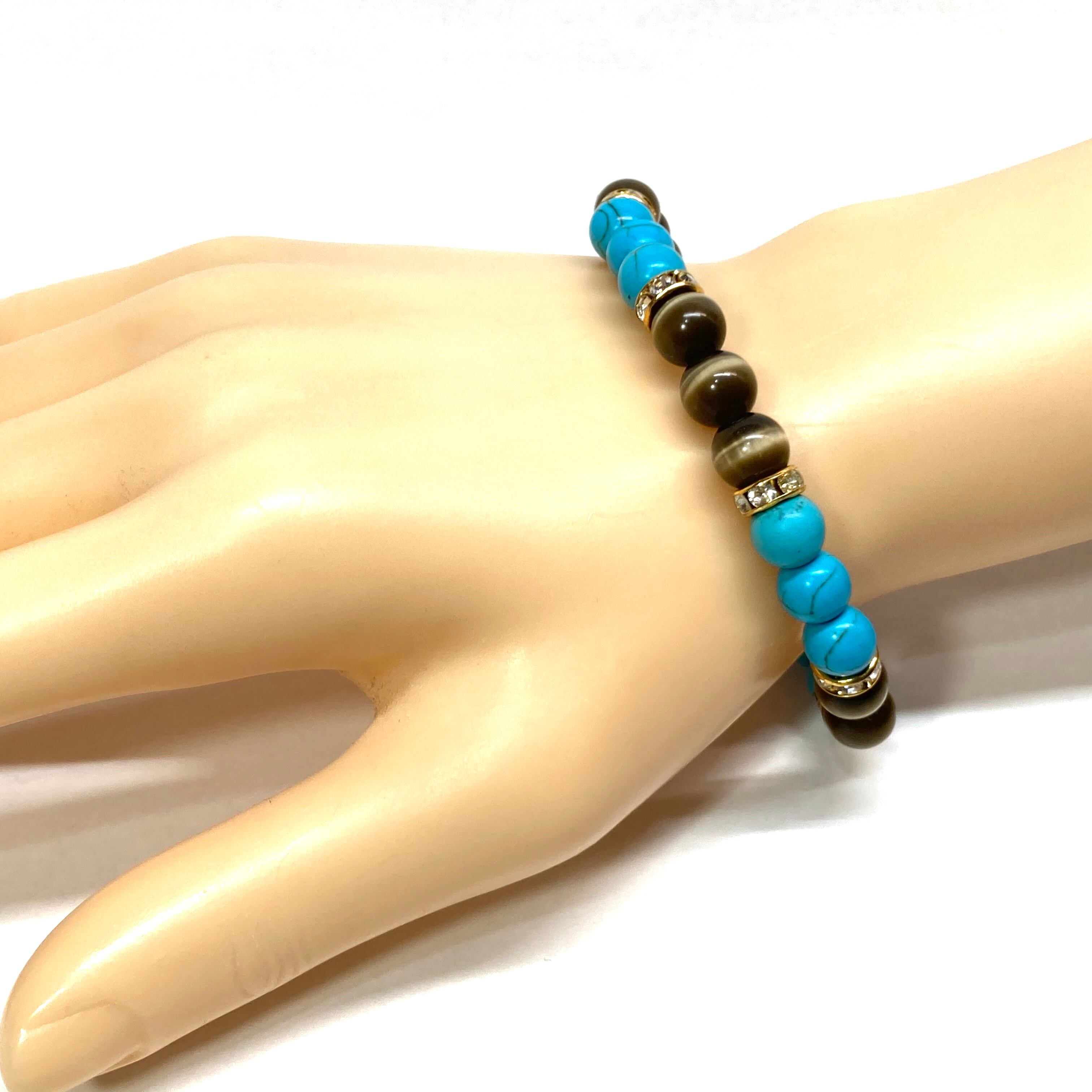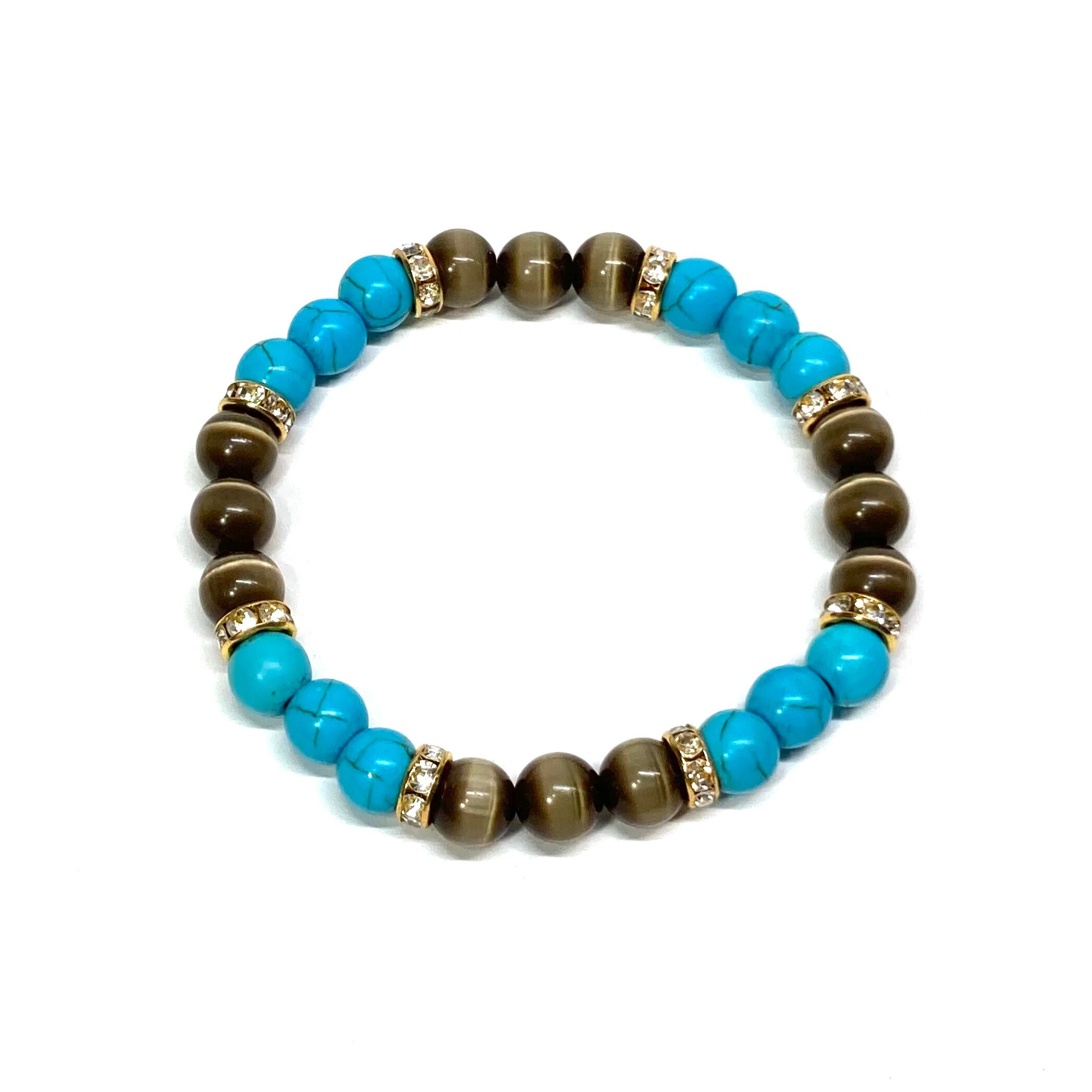 ターコイズ&キャッツアイ(ブラウン) パワーストーン ブレスレット (ゴールド)メンズ レディース ハンドメイト