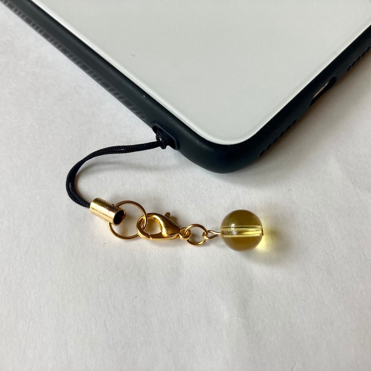 こちらは、8mm玉のシトリンを使用した一粒ストラップです。携帯電話にそのまま付けたり、ストラップから取り外しできるデザインに制作しておりますので、ストラップから外してお財布やポーチに付けたり、マスクチャームとも使えるデザインに仕上げています。気になる方は是非この機会にどうぞ。