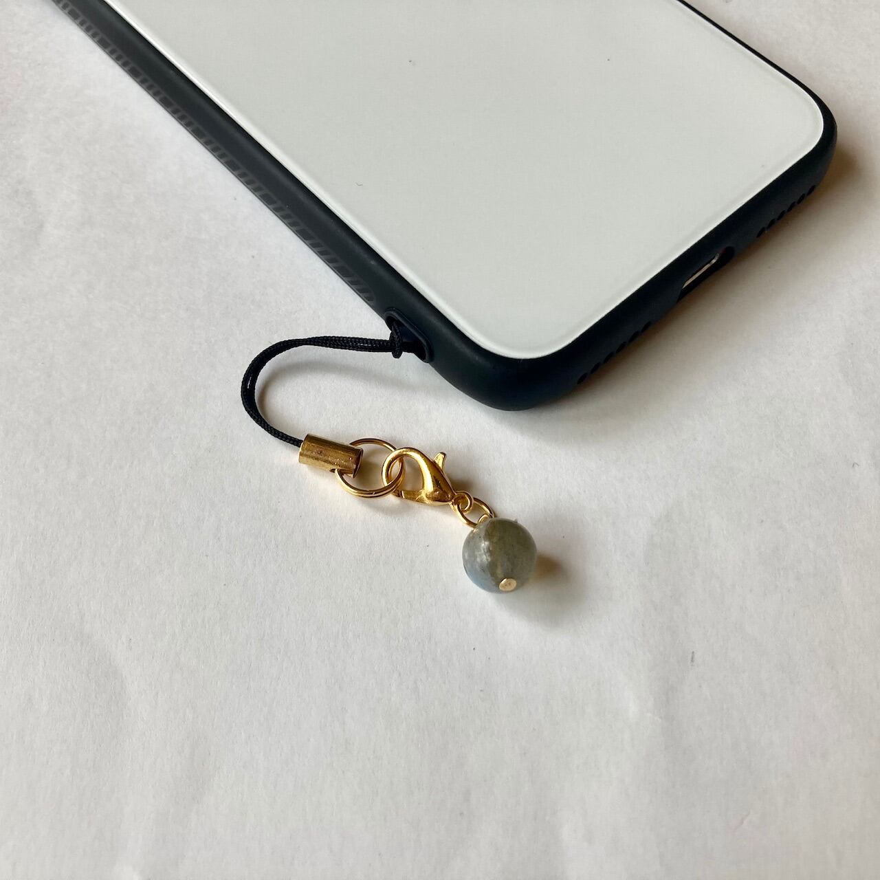 こちらは、8mm玉のラブラドライトを使用した一粒ストラップです。携帯電話にそのまま付けたり、ストラップから取り外しできるデザインに制作しておりますので、ストラップから外してお財布やポーチに付けたり、マスクチャームとも使えるデザインに仕上げています。気になる方は是非この機会にどうぞ。