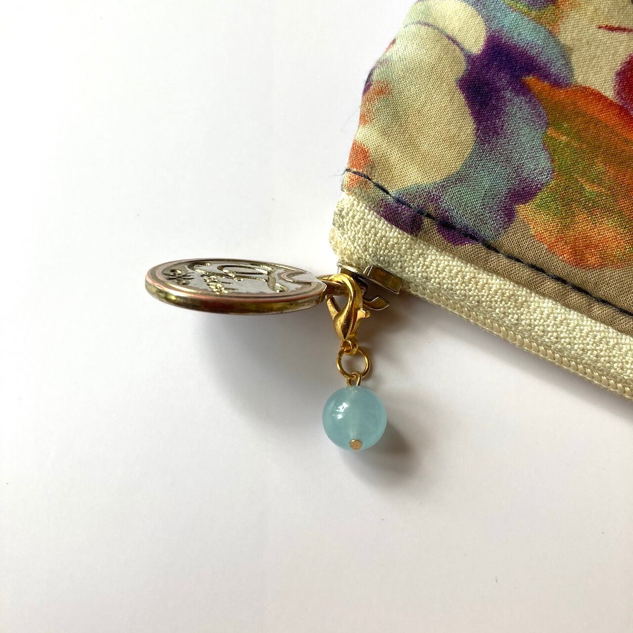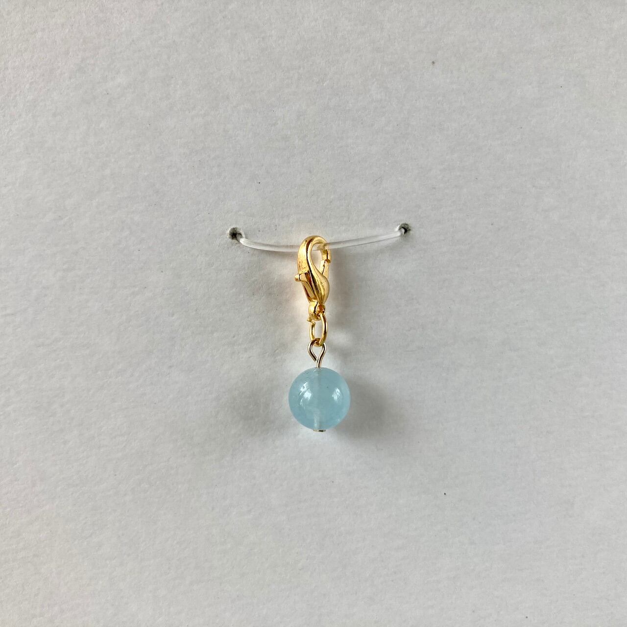 こちらは、8mm玉のアクアマリンを使用した一粒ストラップです。携帯電話にそのまま付けたり、ストラップから取り外しできるデザインに制作しておりますので、ストラップから外してお財布やポーチに付けたり、マスクチャームとも使えるデザインに仕上げています。気になる方は是非この機会にどうぞ。