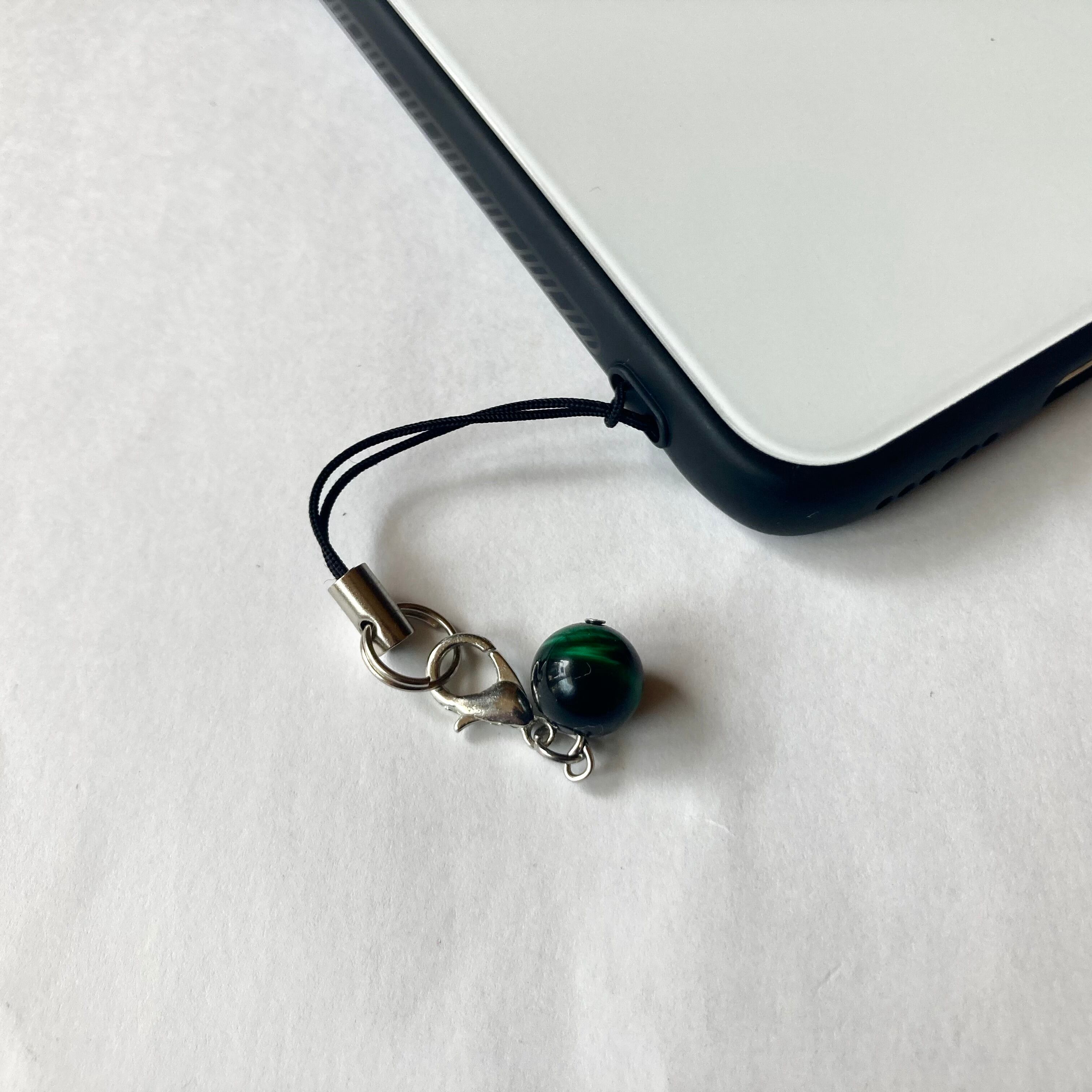 こちらは、8mm玉のグリーンタイガーアイを使用した一粒ストラップです。携帯電話にそのまま付けたり、ストラップから取り外しできるデザインに制作しておりますので、ストラップから外してお財布やポーチに付けたり、マスクチャームとも使えるデザインに仕上げています。気になる方は是非この機会にどうぞ。