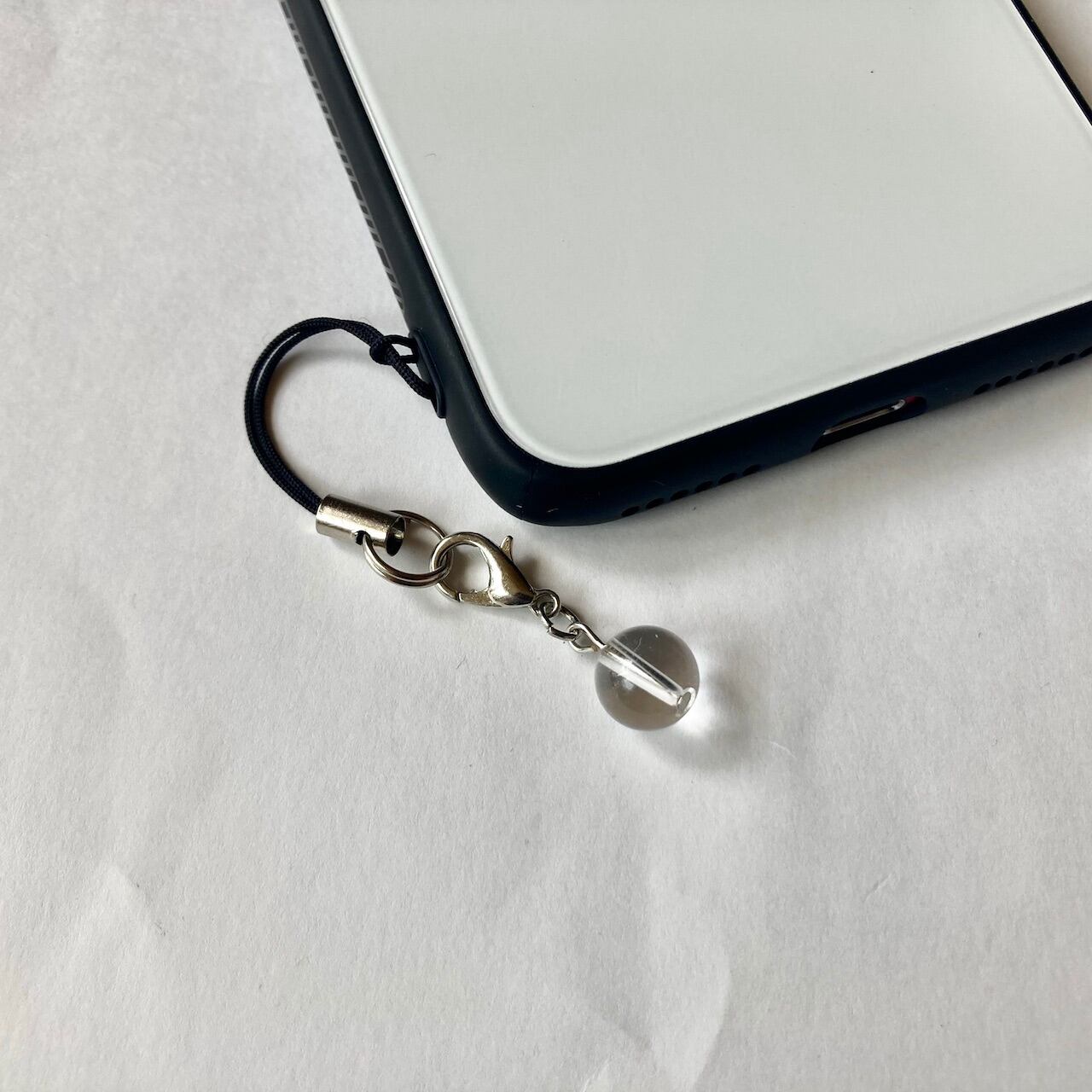 こちらは、8mm玉の水晶を使用した一粒ストラップです。携帯電話にそのまま付けたり、ストラップから取り外しできるデザインに制作しておりますので、ストラップから外してお財布やポーチに付けたり、マスクチャームとも使えるデザインに仕上げています。気になる方は是非この機会にどうぞ。