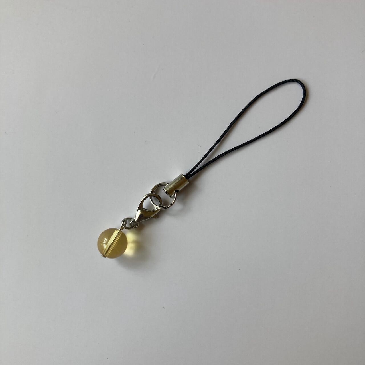 こちらは、8mm玉のシトリンを使用した一粒ストラップです。携帯電話にそのまま付けたり、ストラップから取り外しできるデザインに制作しておりますので、ストラップから外してお財布やポーチに付けたり、マスクチャームとも使えるデザインに仕上げています。気になる方は是非この機会にどうぞ。