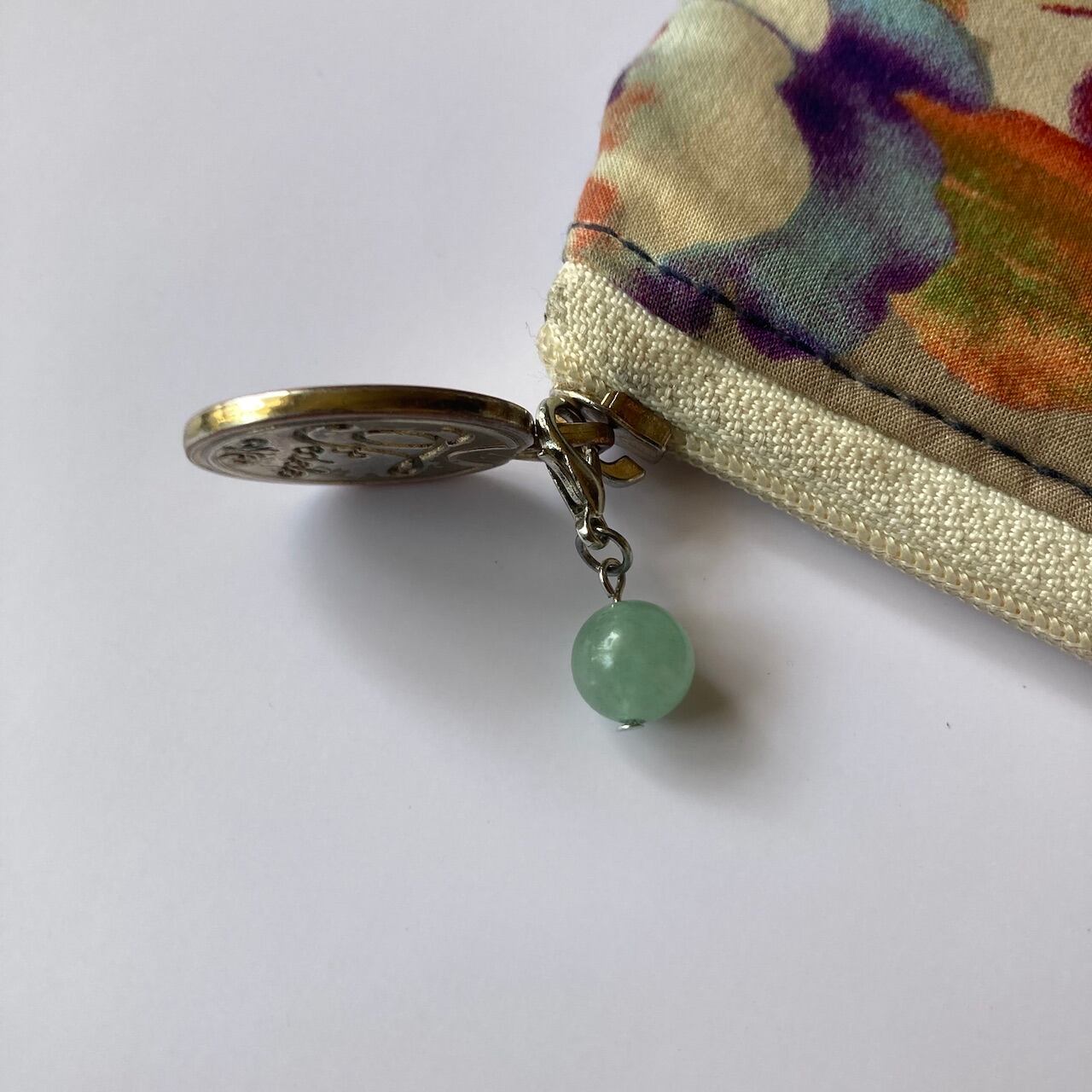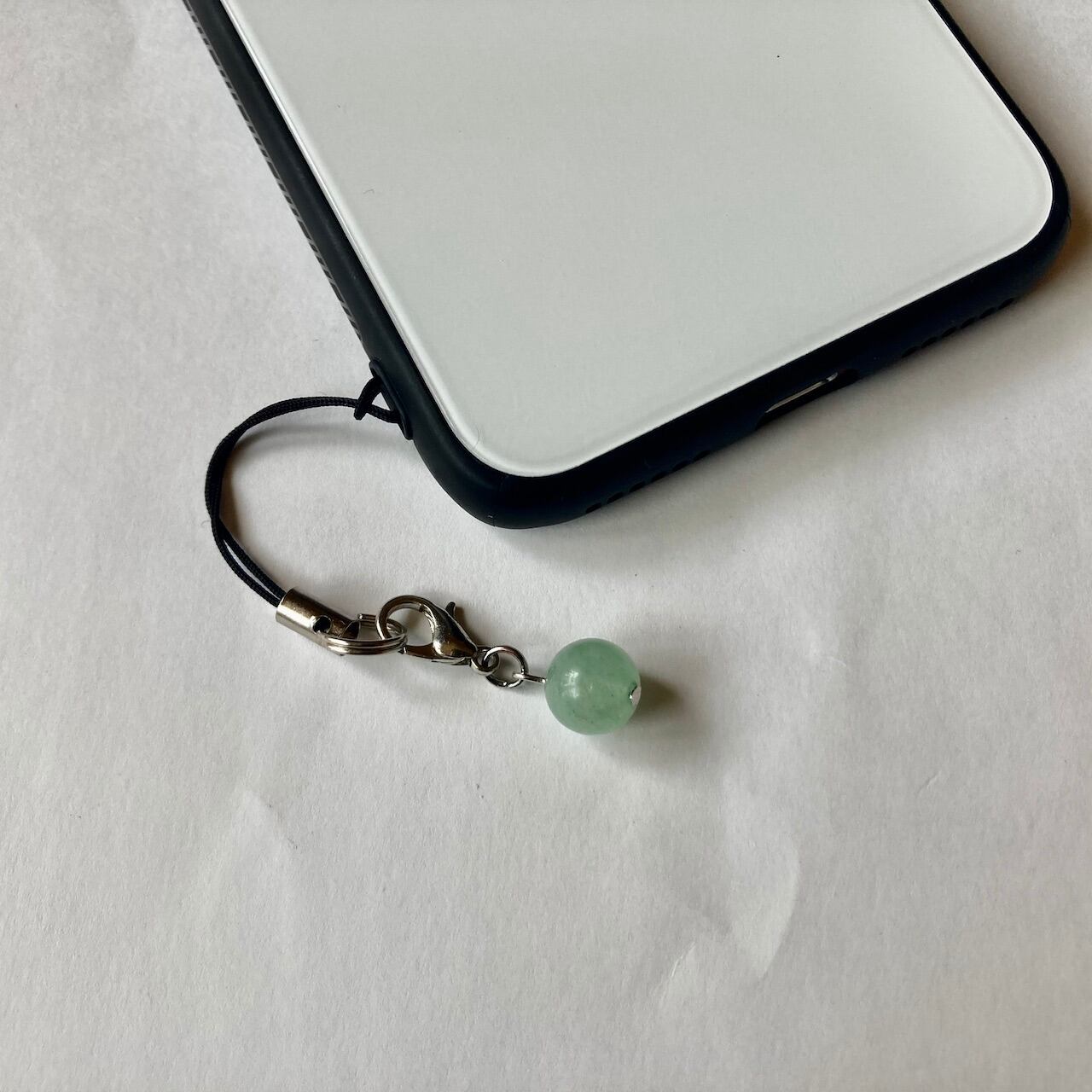 こちらは、8mm玉のアベンチュリンを使用した一粒ストラップです。携帯電話にそのまま付けたり、ストラップから取り外しできるデザインに制作しておりますので、ストラップから外してお財布やポーチに付けたり、マスクチャームとも使えるデザインに仕上げています。気になる方は是非この機会にどうぞ。
