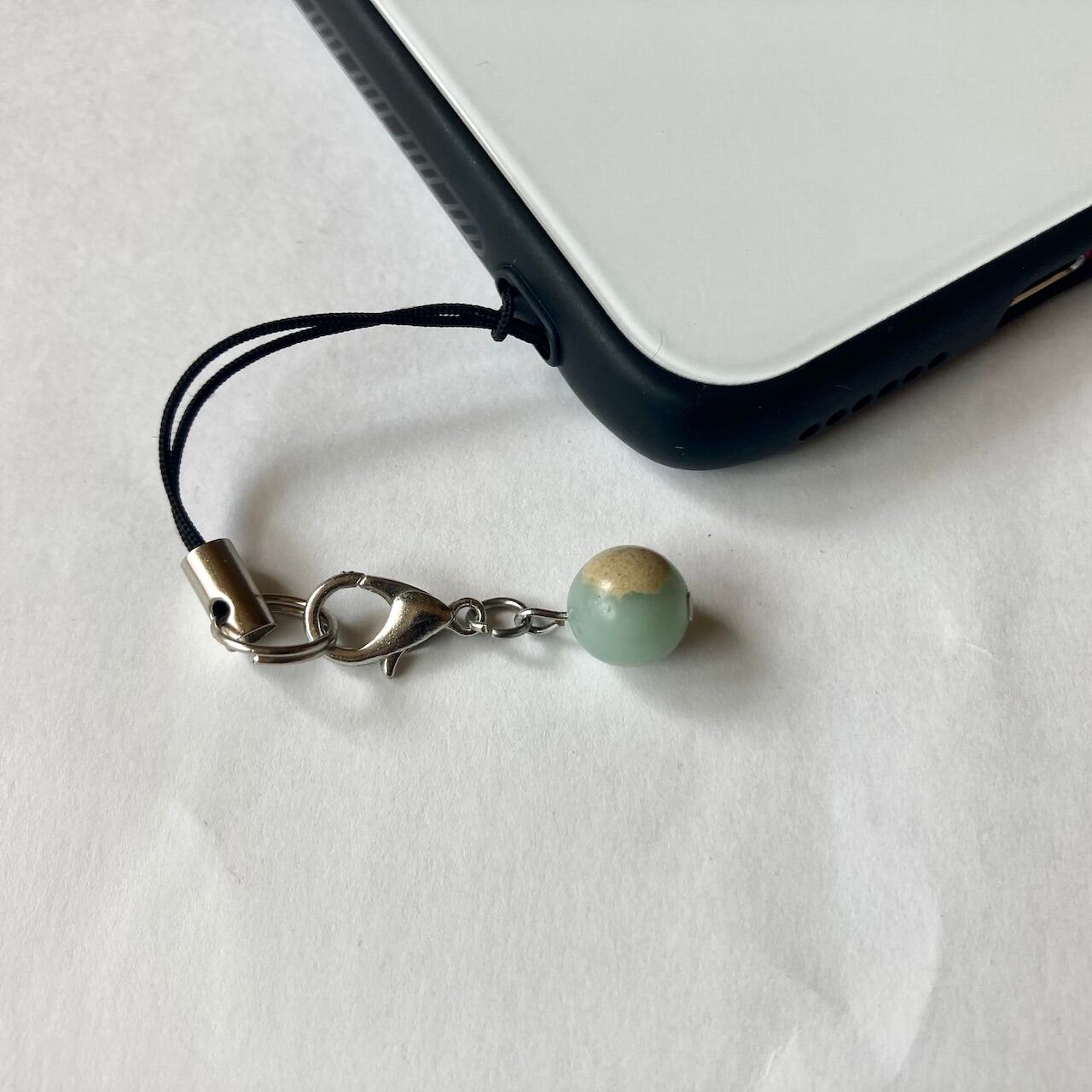 こちらは、8mm玉のインプレッションストーンを使用した一粒ストラップです。携帯電話にそのまま付けたり、ストラップから取り外しできるデザインに制作しておりますので、ストラップから外してお財布やポーチに付けたり、マスクチャームとも使えるデザインに仕上げています。気になる方は是非この機会にどうぞ。