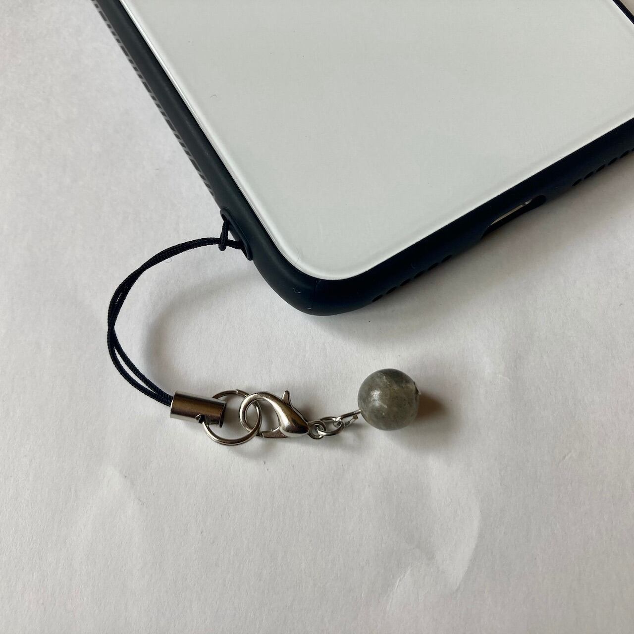 こちらは、8mm玉のラブラドライトを使用した一粒ストラップです。携帯電話にそのまま付けたり、ストラップから取り外しできるデザインに制作しておりますので、ストラップから外してお財布やポーチに付けたり、マスクチャームとも使えるデザインに仕上げています。気になる方は是非この機会にどうぞ。