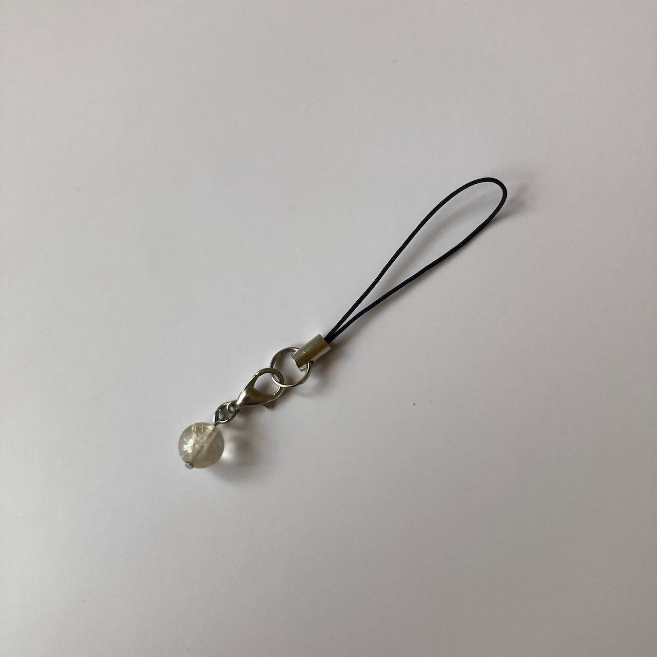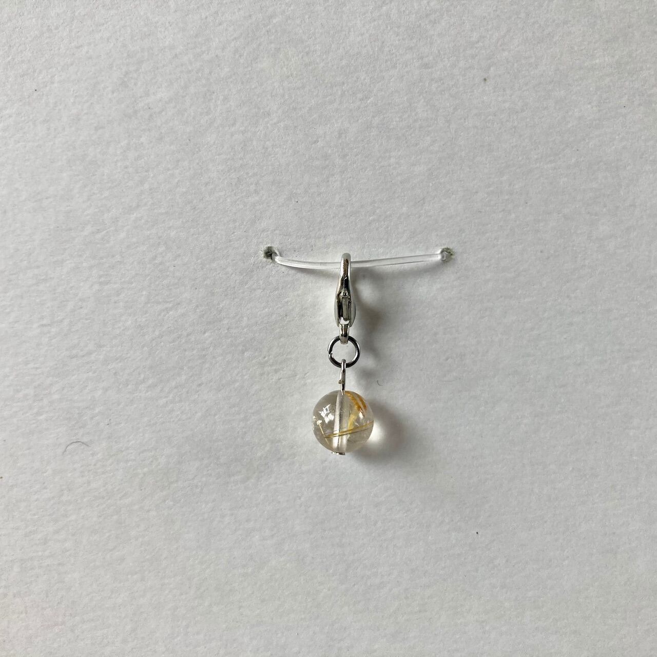 こちらは、8mm玉のルチルクォーツを使用した一粒ストラップです。携帯電話にそのまま付けたり、ストラップから取り外しできるデザインに制作しておりますので、ストラップから外してお財布やポーチに付けたり、マスクチャームとも使えるデザインに仕上げています。気になる方は是非この機会にどうぞ。