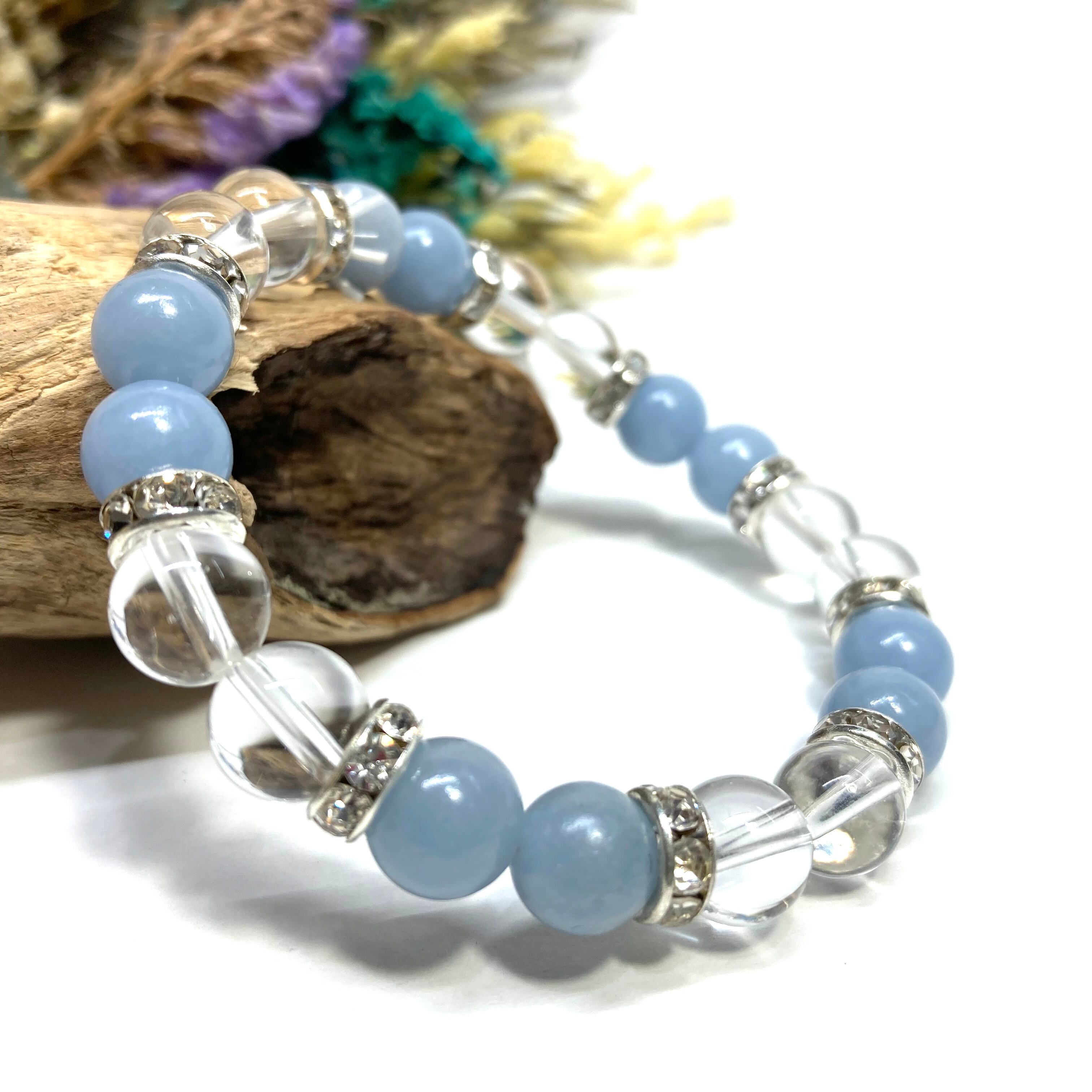 エンジェライト&水晶 パワーストーン ブレスレット 天然石ブレス (シルバー) 8mm レディース 女性 数珠ブレス 開運 プレゼント ギフト