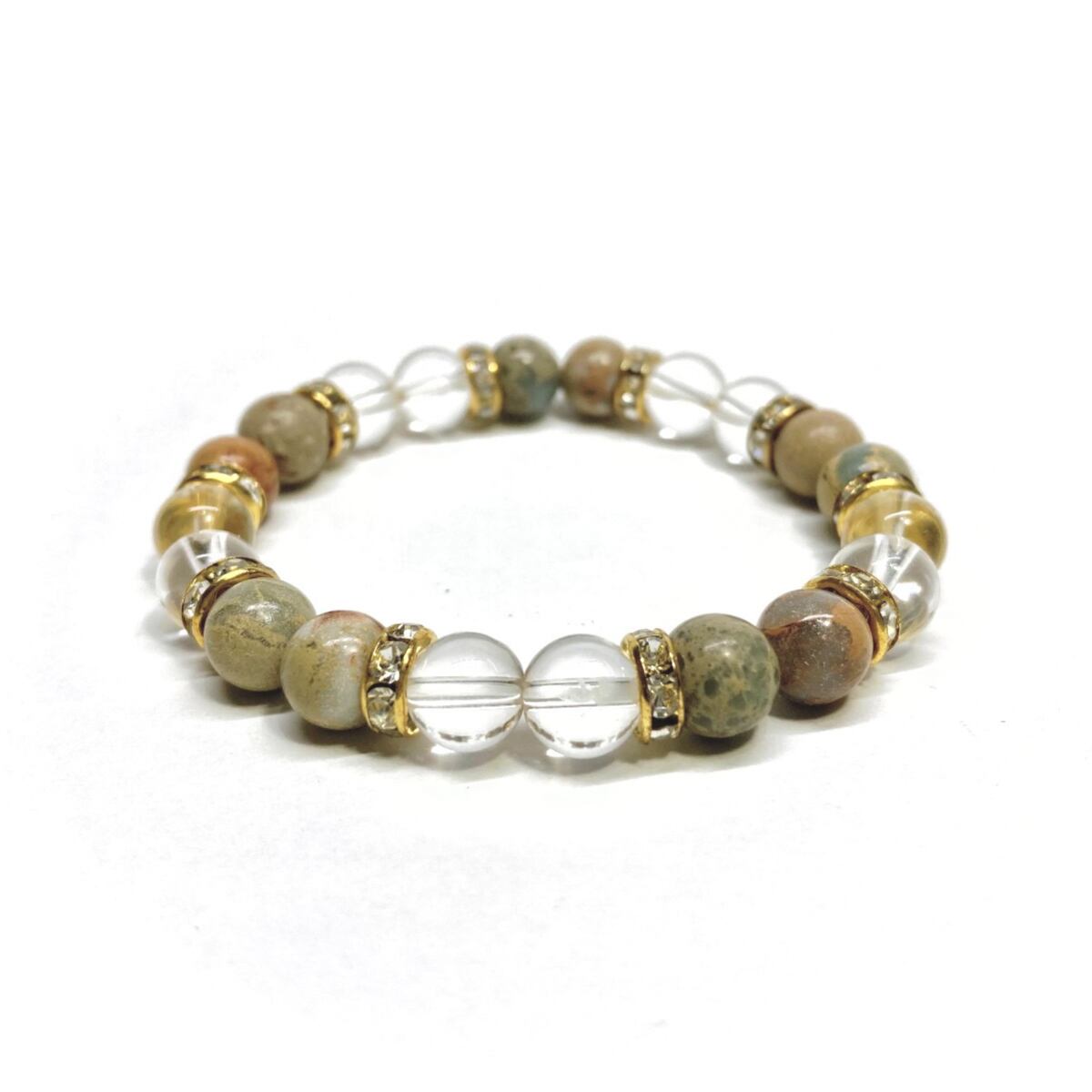 インプレッションストーン&水晶 パワーストーン ブレスレット 天然石ブレス (ゴールド) 8mm レディース 女性 数珠ブレス 開運 プレゼント ギフト