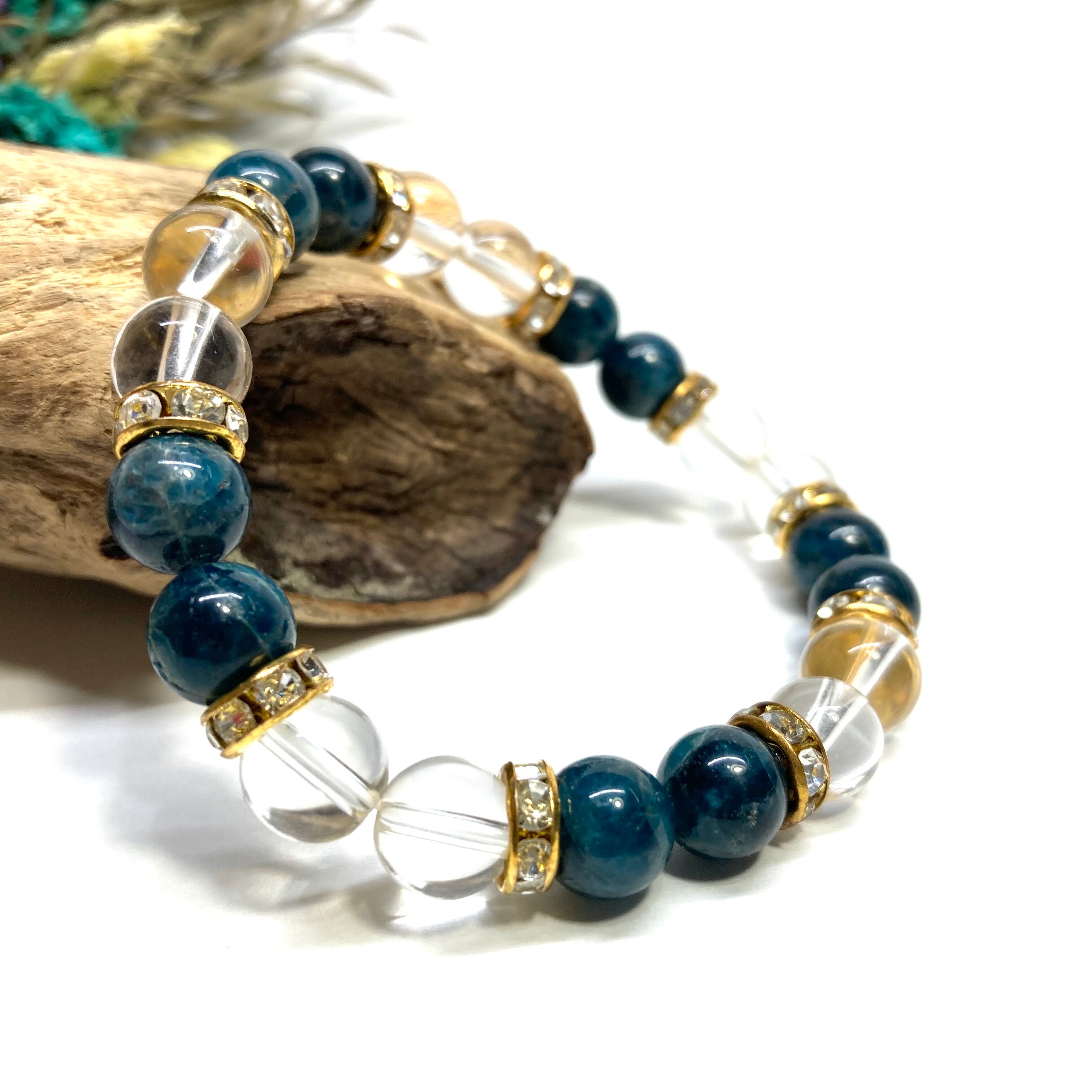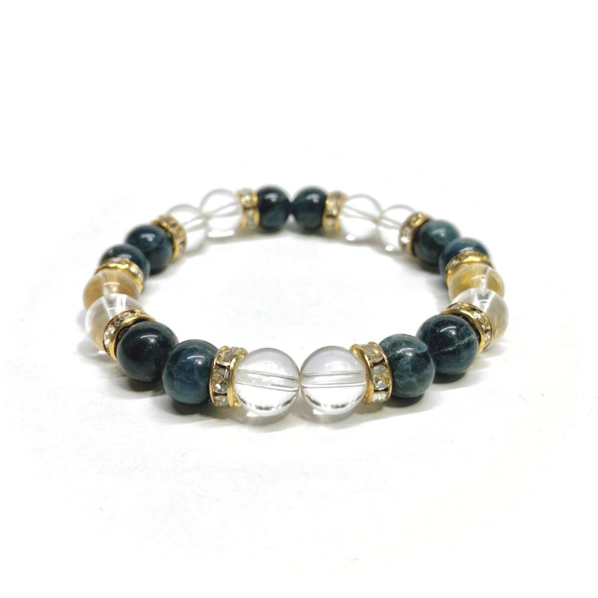 アパタイト&水晶 パワーストーン ブレスレット 天然石ブレス (ゴールド) 8mm レディース 女性 数珠ブレス 開運 プレゼント ギフト
