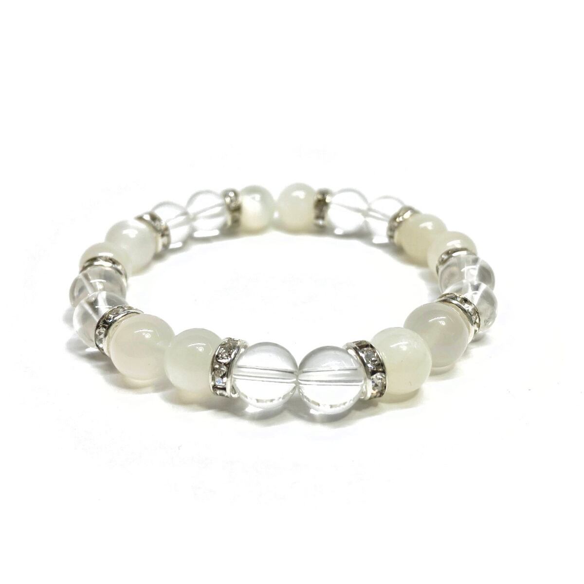 ムーンストーン&水晶 パワーストーン ブレスレット 天然石ブレス (シルバー) 8mm レディース 女性 数珠ブレス 開運 プレゼント ギフト