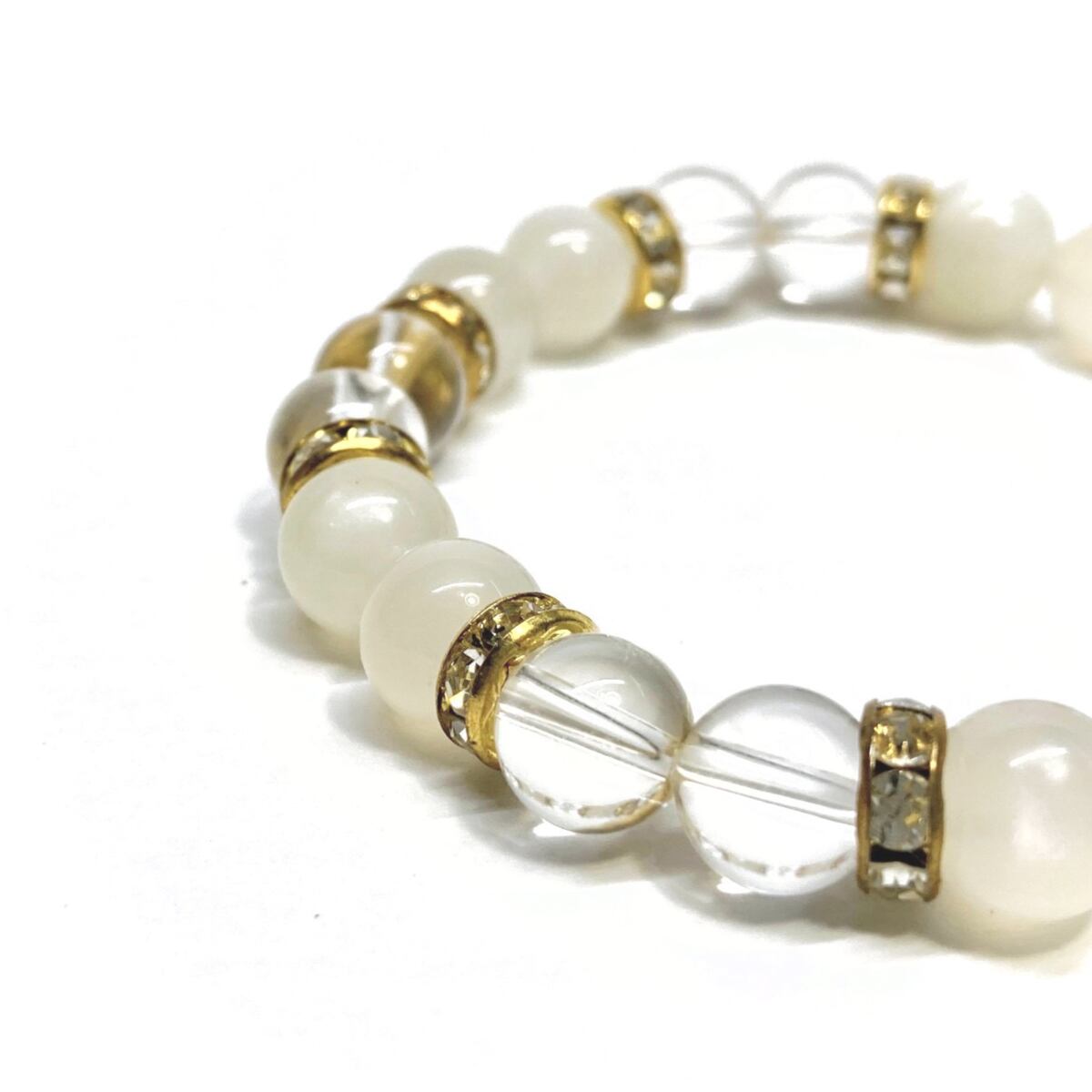 ムーンストーン&水晶 パワーストーン ブレスレット 天然石ブレス (ゴールド) 8mm レディース 女性 数珠ブレス 開運 プレゼント ギフト