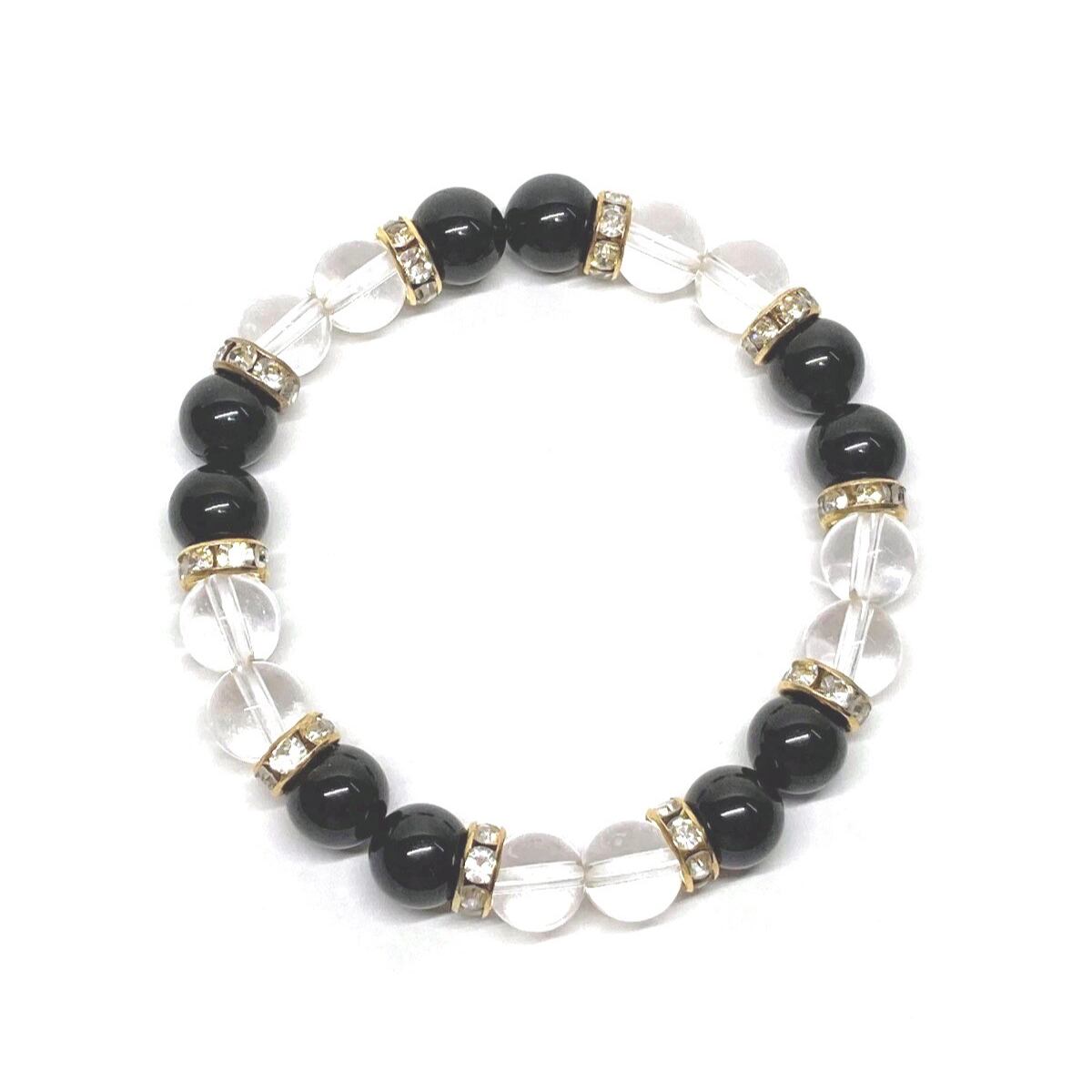 モリオン&水晶 パワーストーン ブレスレット 天然石ブレス (ゴールド) 8mm レディース 女性 数珠ブレス 開運 プレゼント ギフト