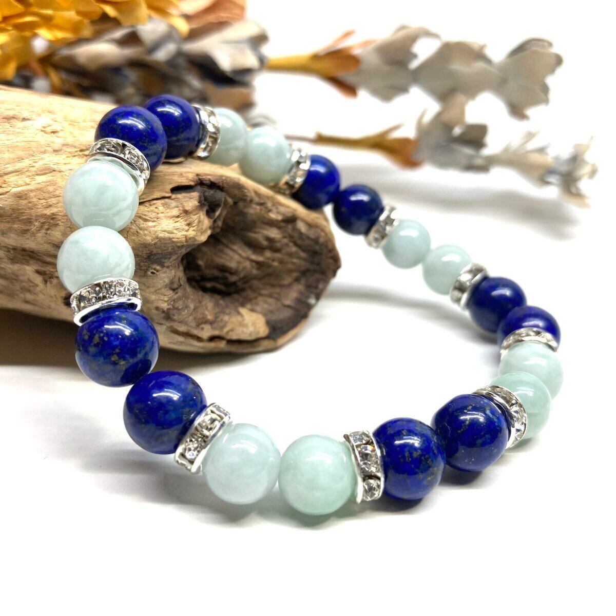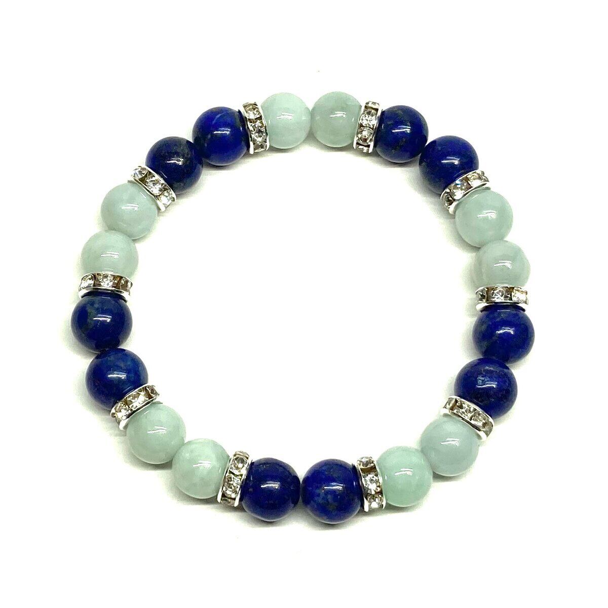 ラピスラズリ&ビルマ翡翠 パワーストーン ブレスレット 天然石 (シルバー) 8mm レディース 女性 数珠ブレス 開運 プレゼント ギフト