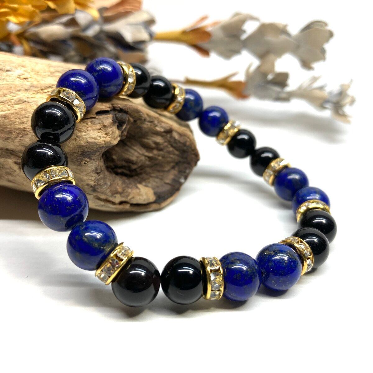 ラピスラズリ&モリオン パワーストーン ブレスレット 天然石 (ゴールド) 8mm レディース 女性 数珠ブレス 開運 プレゼント ギフト