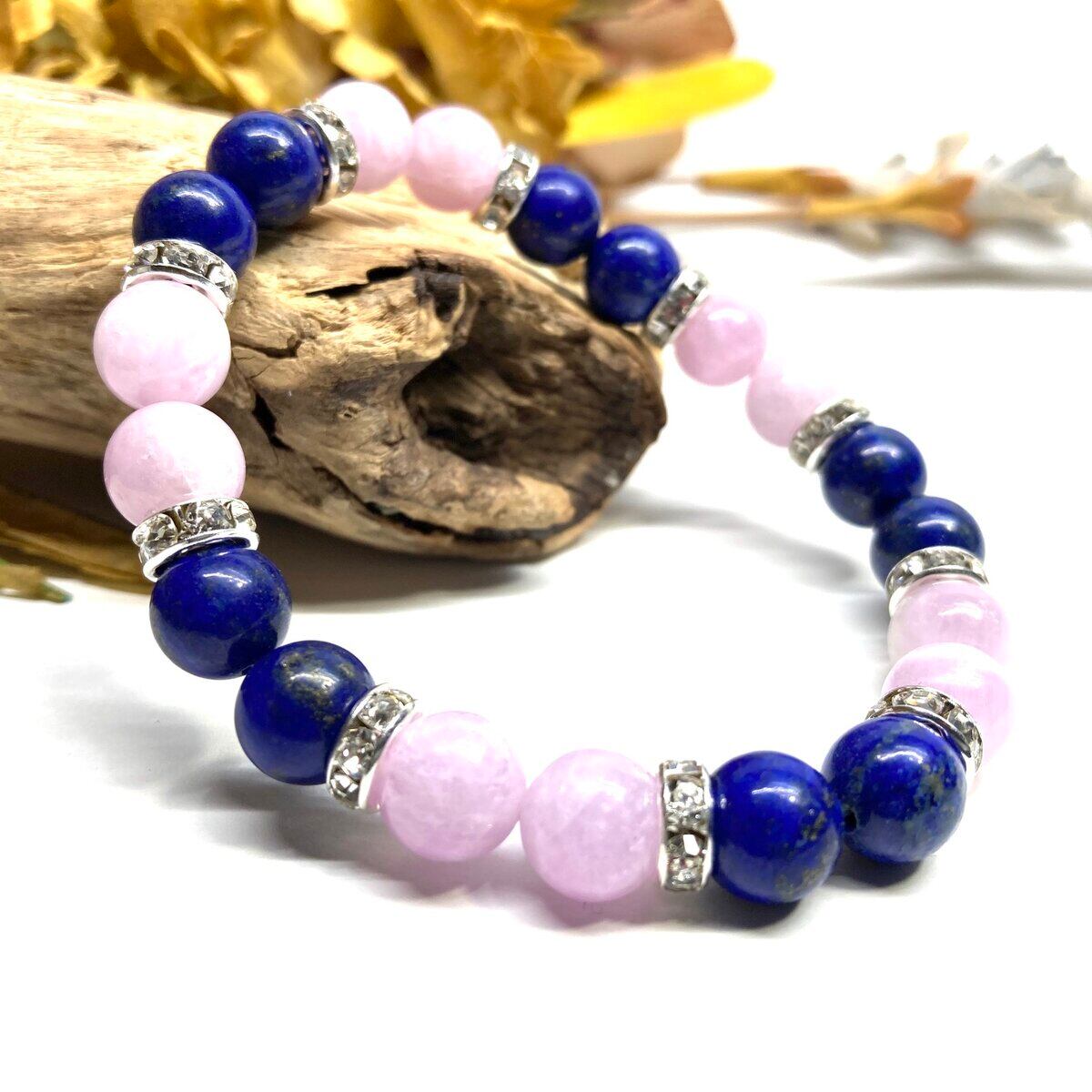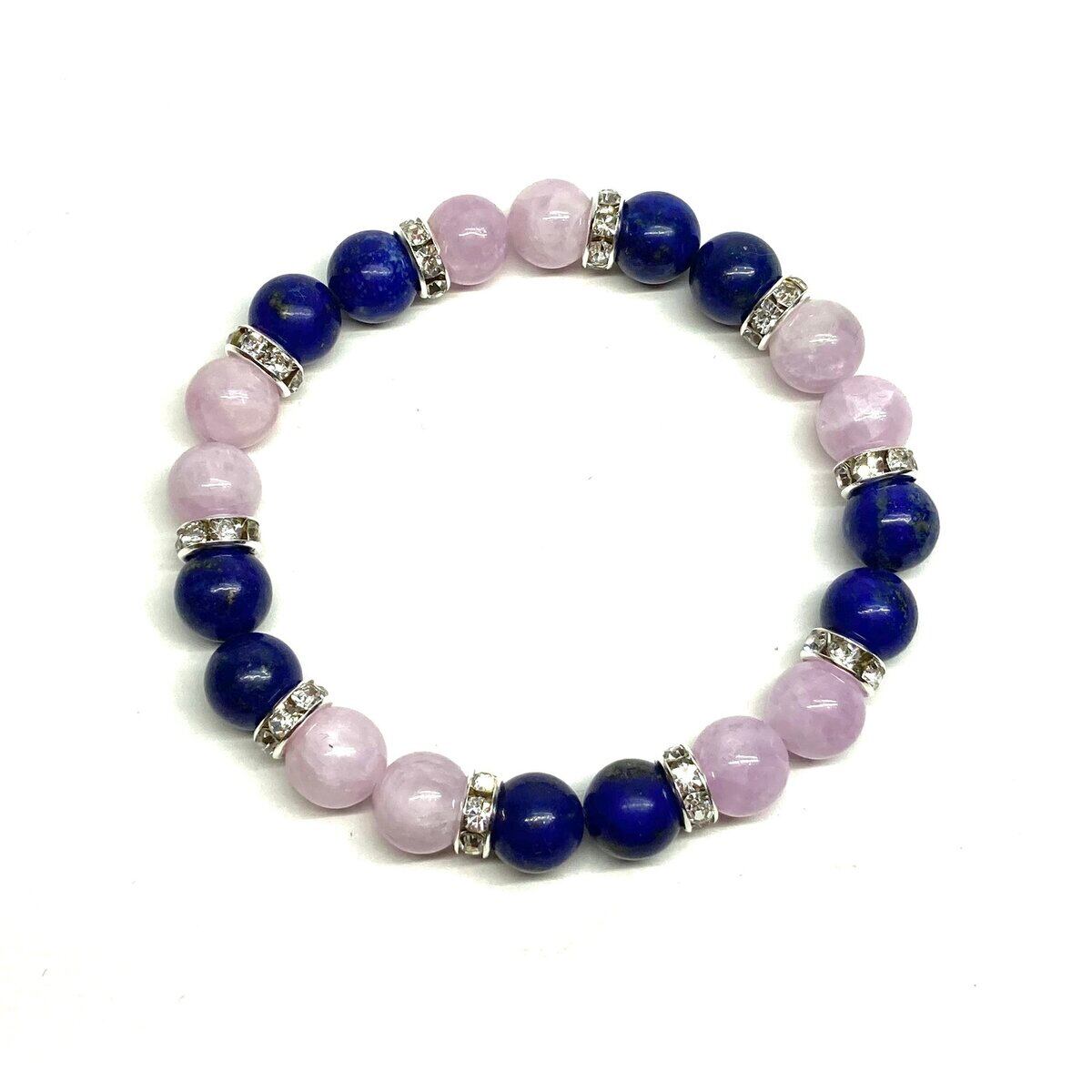 ラピスラズリ&クンツァイト パワーストーン ブレスレット 天然石 (シルバー) 8mm レディース 女性 数珠ブレス 開運 プレゼント ギフト