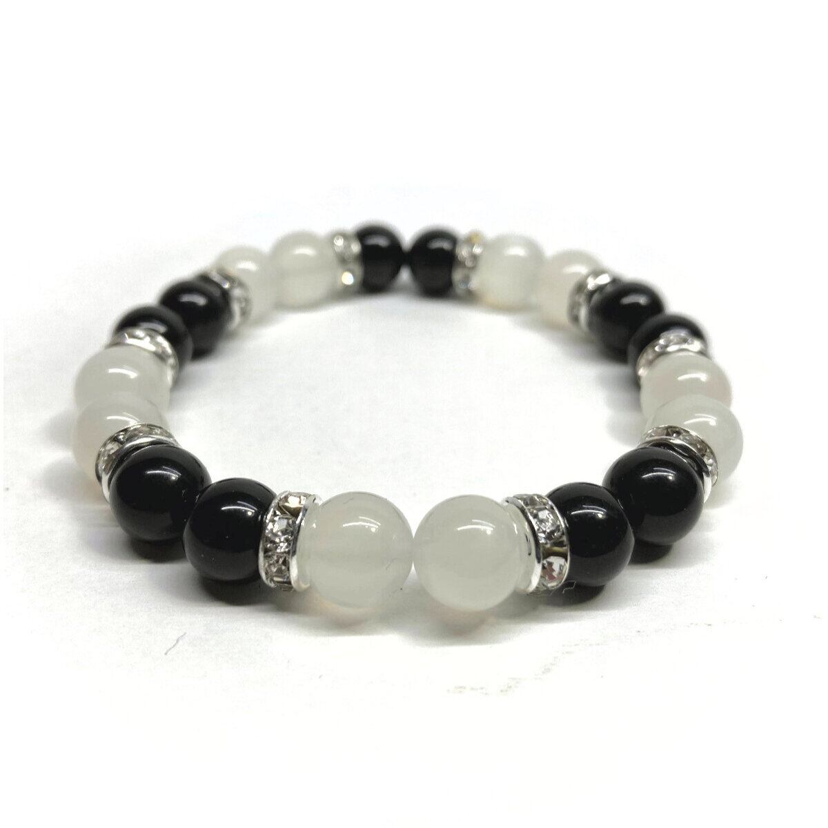 モリオン&ムーンストーン パワーストーン ブレスレット 天然石 (シルバー) 8mm レディース 女性 数珠ブレス 開運 プレゼント ギフト