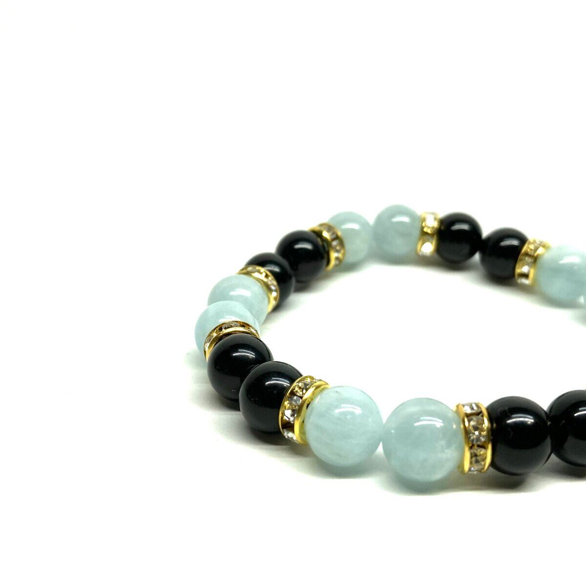 モリオン&アクアマリン パワーストーン ブレスレット 天然石 (ゴールド) 8mm レディース 女性 数珠ブレス 開運 プレゼント ギフト
