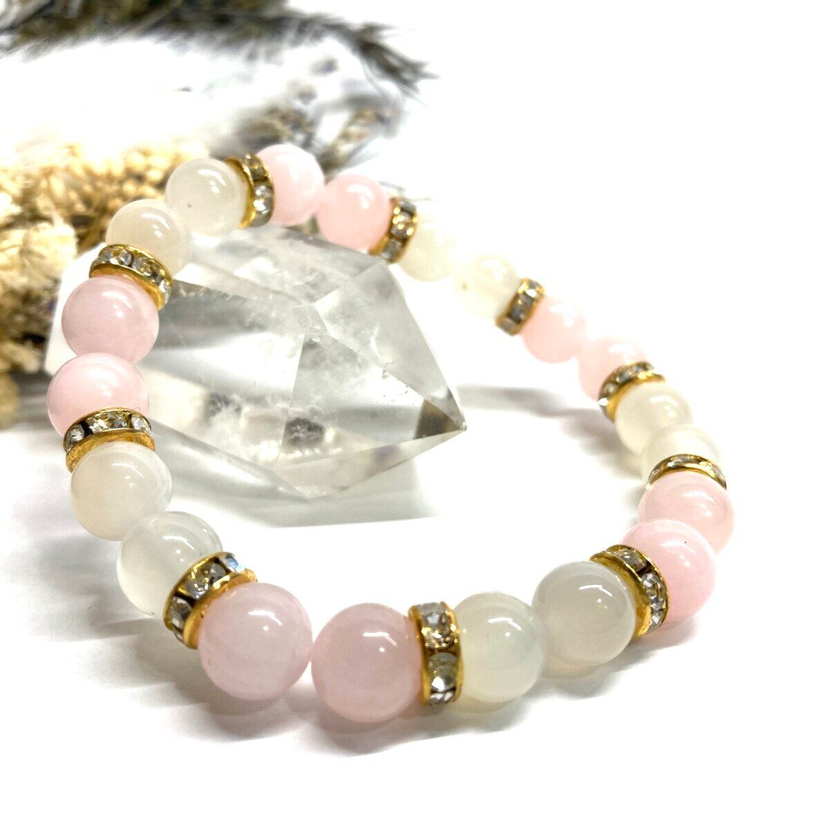 ムーンストーン&ローズクォーツ パワーストーン ブレスレット 天然石 (ゴールド) 8mm レディース 女性 数珠ブレス 開運 プレゼント ギフト