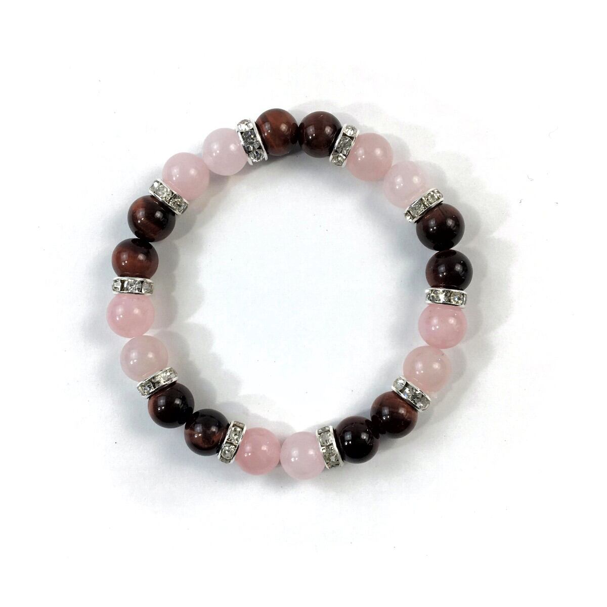ローズクォーツ&レッドタイガーアイ パワーストーン ブレスレット 天然石 8mm(シルバー)レディース 女性 数珠ブレス 開運 プレゼント ギフト