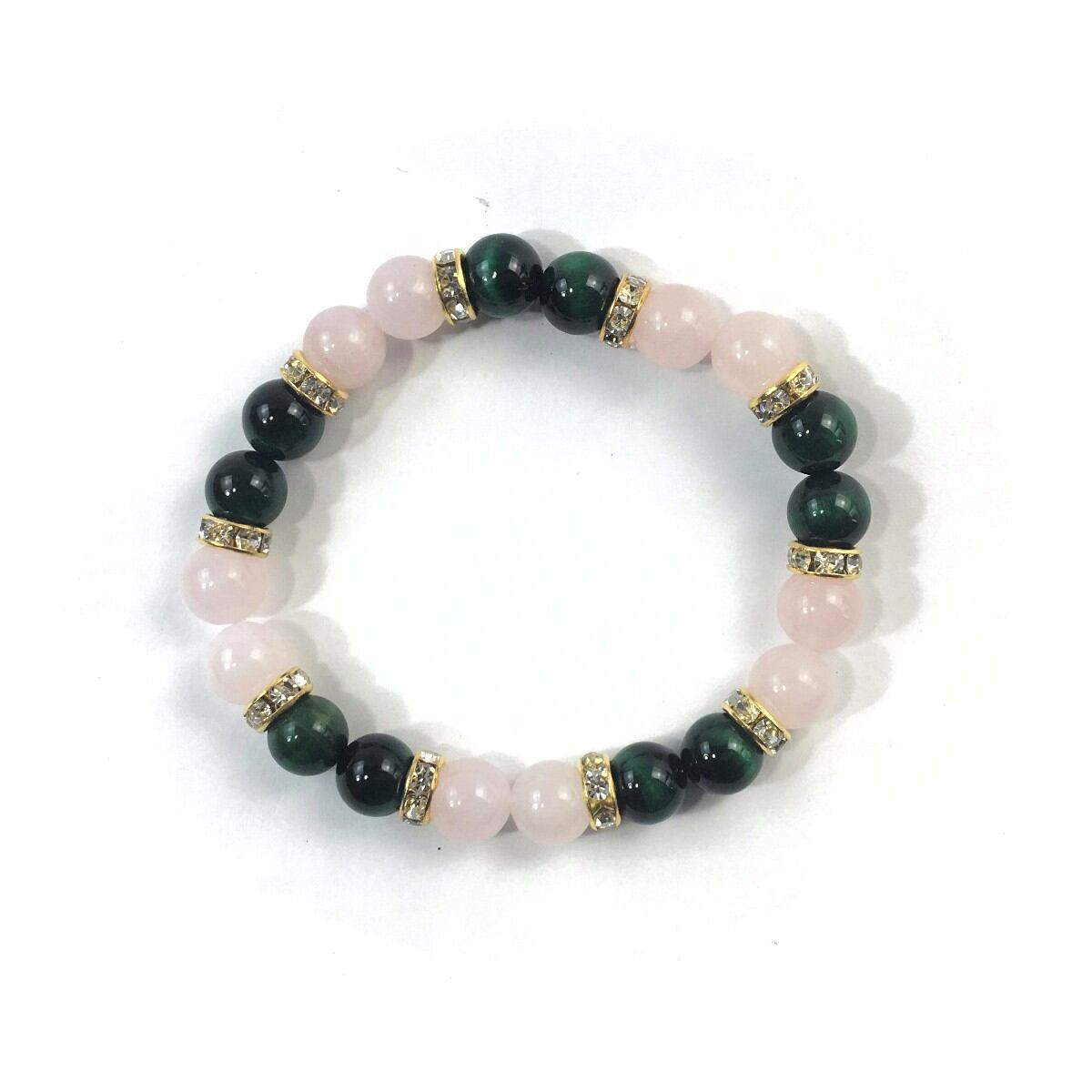 ローズクォーツ&グリーンタイガーアイ パワーストーン ブレスレット 天然石 8mm(ゴールド)レディース 女性 数珠ブレス 開運 プレゼント ギフト