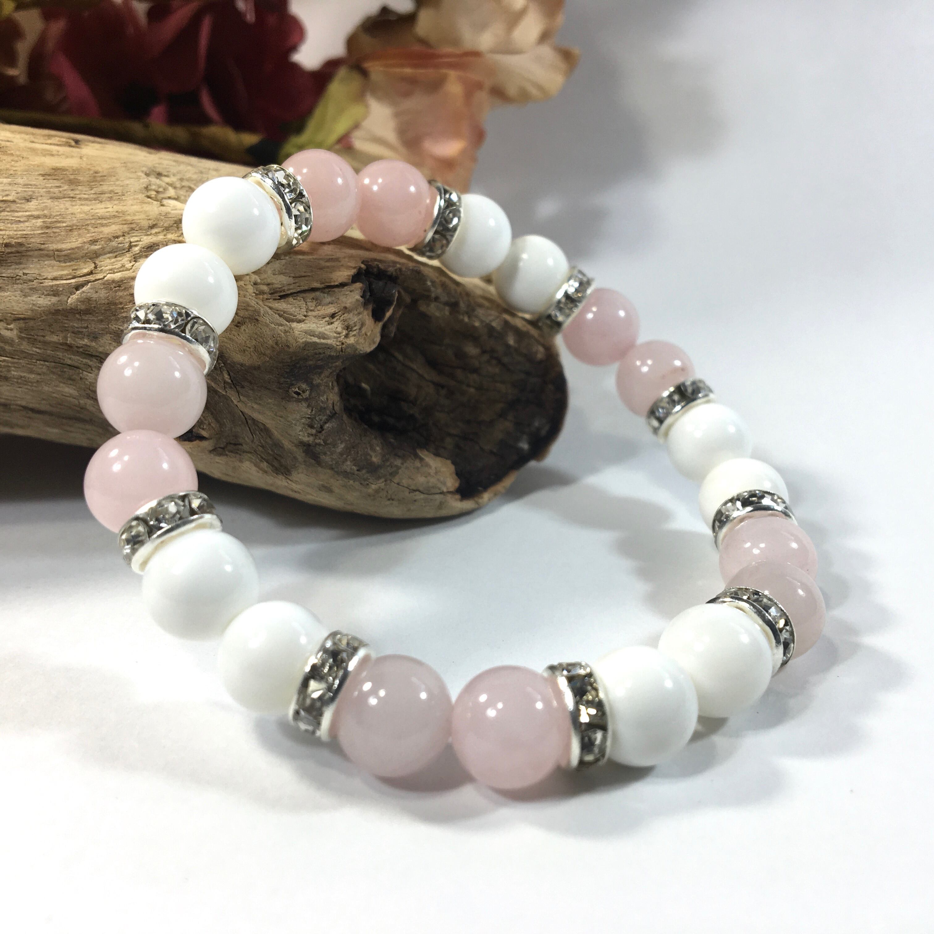 ローズクォーツ&ホワイトオニキス パワーストーン ブレスレット 天然石 8mm(シルバー)レディース 女性 数珠ブレス 開運 プレゼント ギフト