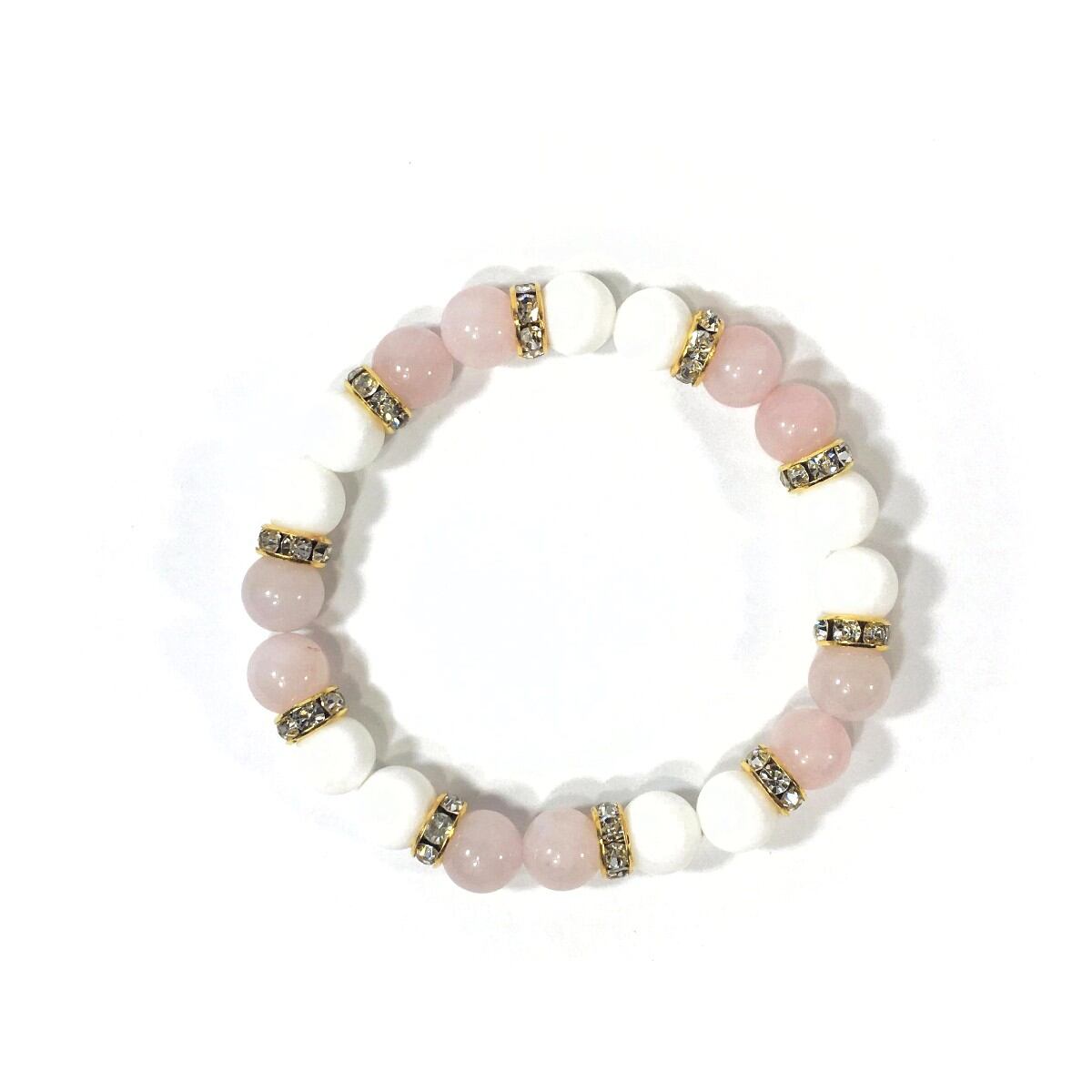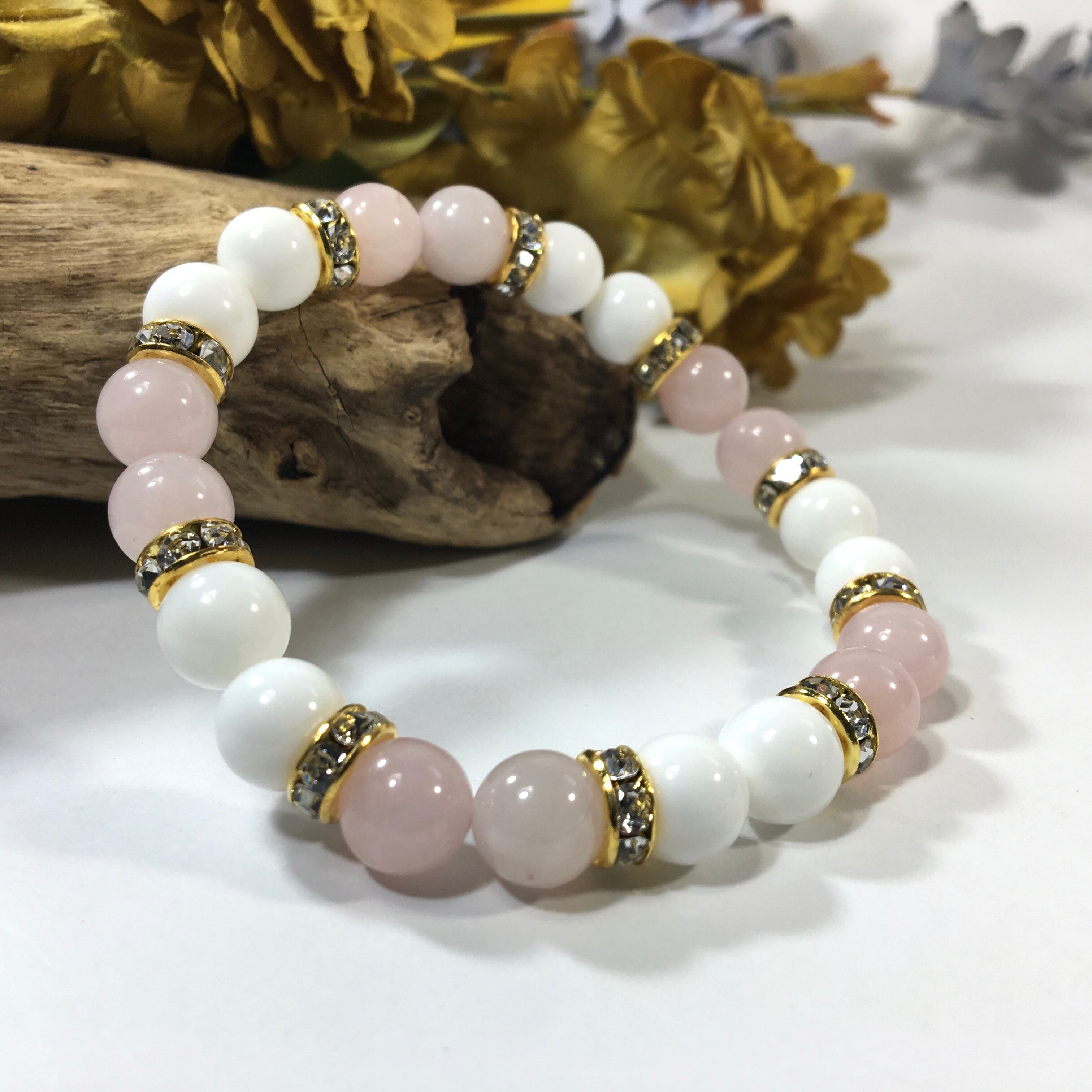 ローズクォーツ&ホワイトオニキス パワーストーン ブレスレット 天然石 8mm(ゴールド)レディース 女性 数珠ブレス 開運 プレゼント ギフト