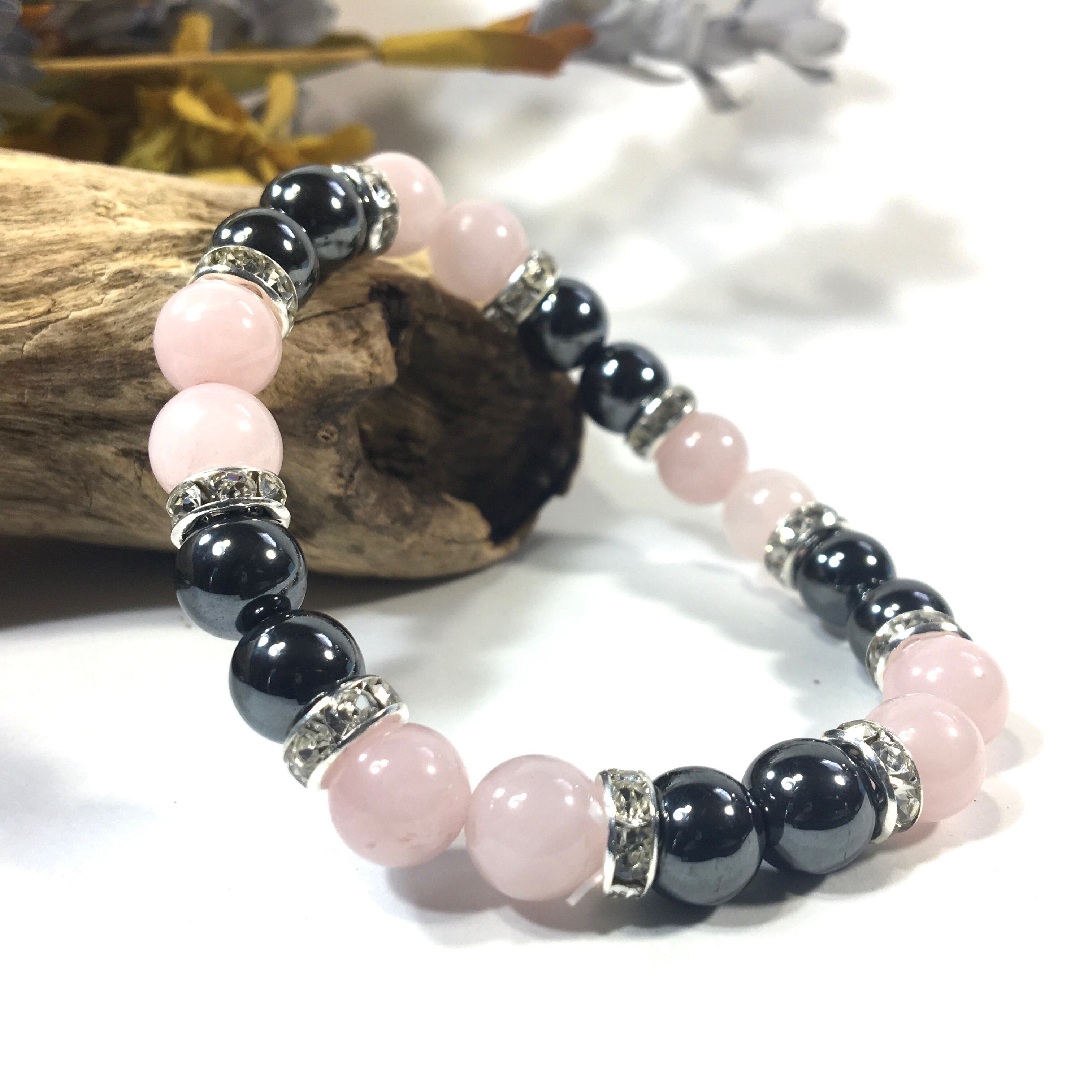 ローズクォーツ&ヘマタイト パワーストーン ブレスレット 天然石 8mm(シルバー)レディース 女性 数珠ブレス 開運 プレゼント ギフト