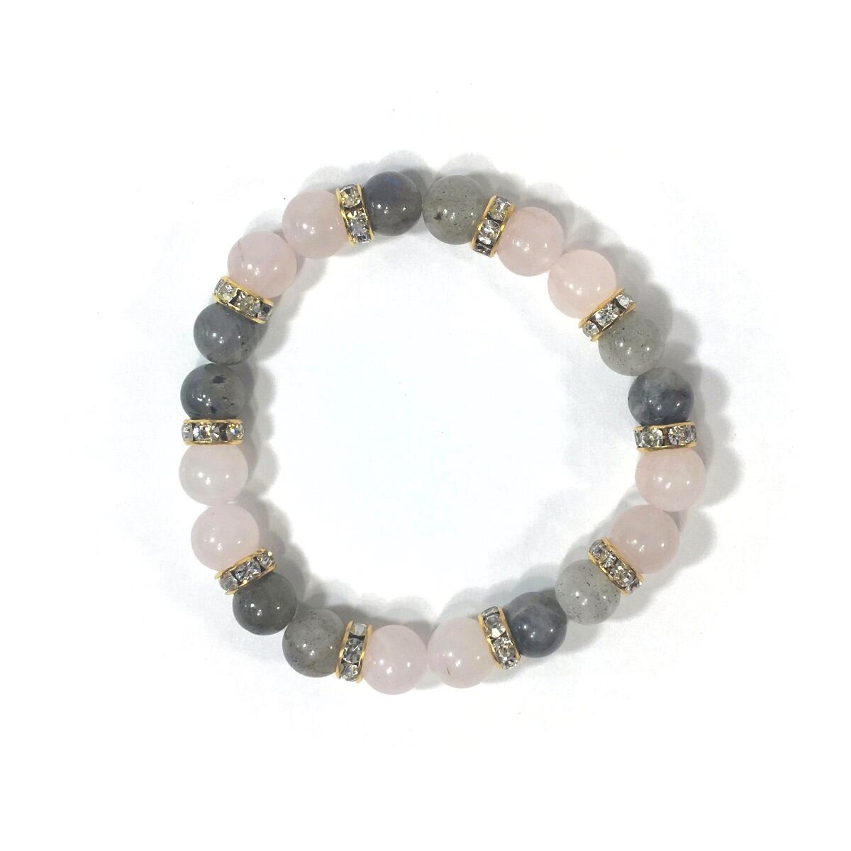 ローズクォーツ&ラブラドライト パワーストーン ブレスレット 天然石 8mm(ゴールド)レディース 女性 数珠ブレス 開運 プレゼント ギフト