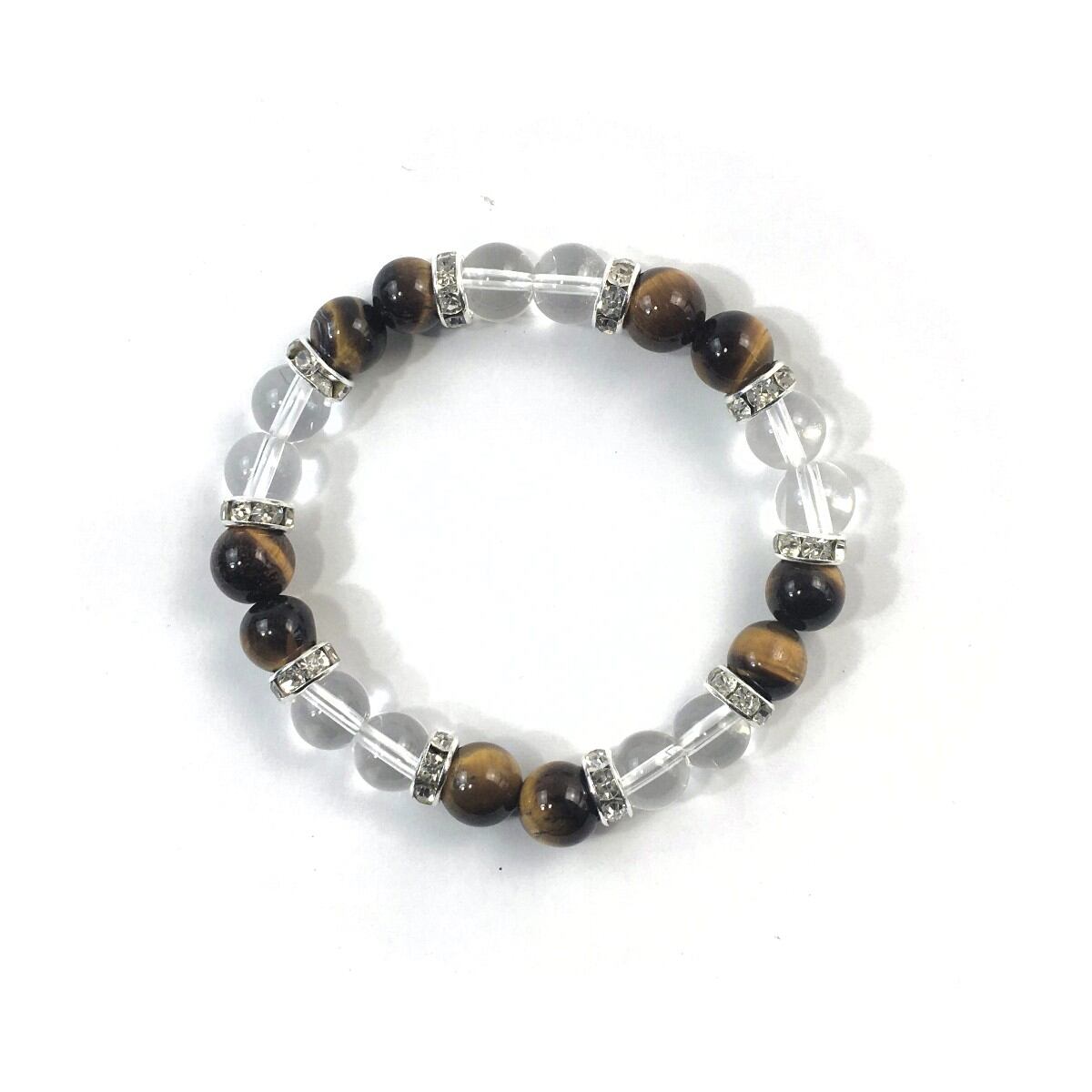 水晶&タイガーアイ パワーストーン ブレスレット 天然石 8mm(シルバー)レディース 女性 数珠ブレス 開運 プレゼント ギフト