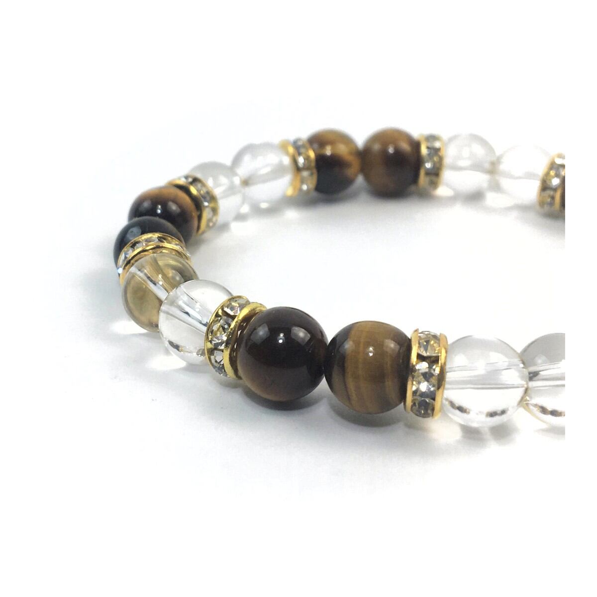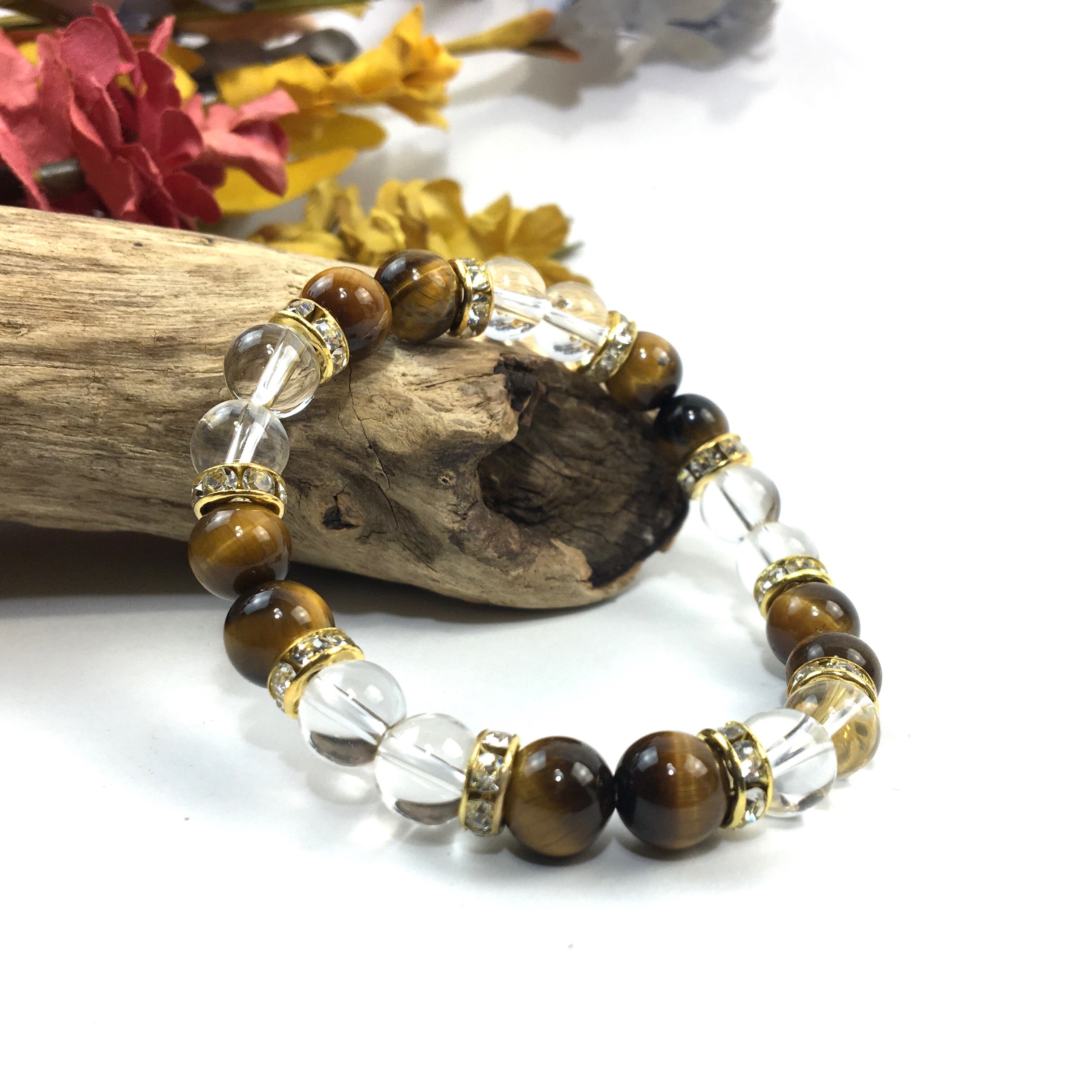 水晶&タイガーアイ パワーストーン ブレスレット 天然石 8mm(ゴールド)レディース 女性 数珠ブレス 開運 プレゼント ギフト
