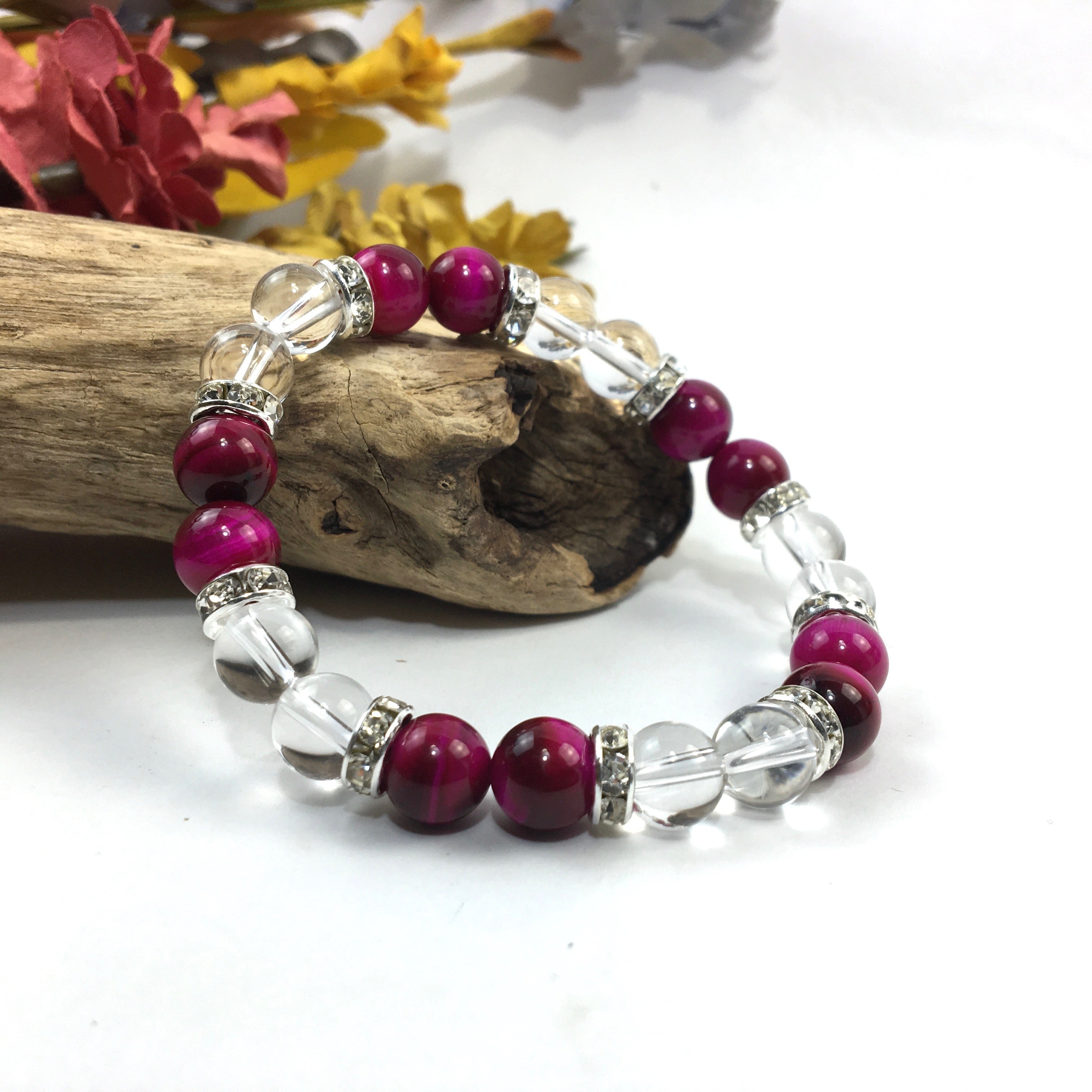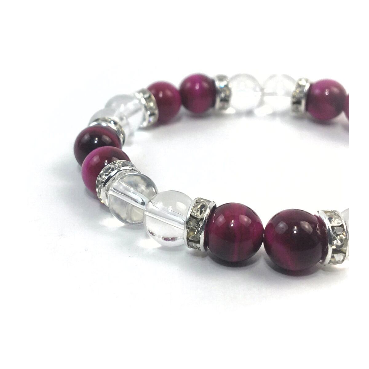 水晶&ピンクタイガーアイ パワーストーン ブレスレット 天然石 8mm(シルバー)レディース 女性 数珠ブレス 開運 プレゼント ギフト