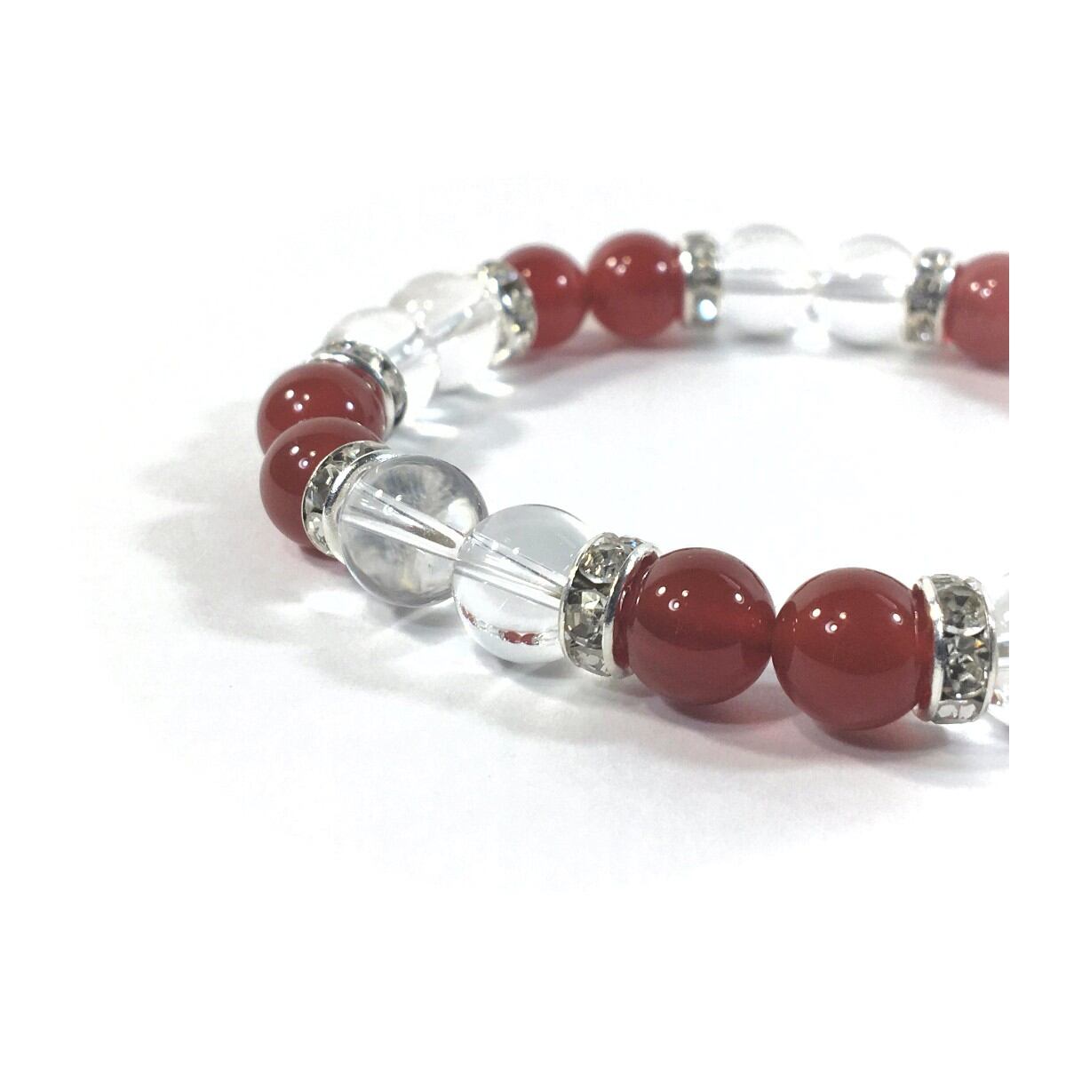 水晶&赤瑪瑙 パワーストーン ブレスレット 天然石ブレスレット 8mm(シルバー)レディース 女性 数珠ブレス 開運 プレゼント ギフト