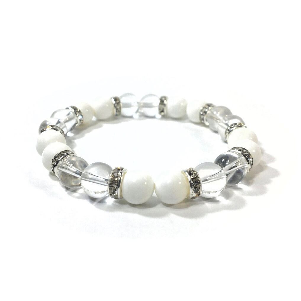 水晶&ホワイトオニキス パワーストーン ブレスレット 天然石 8mm(シルバー)レディース 女性 数珠ブレス 開運 プレゼント ギフト